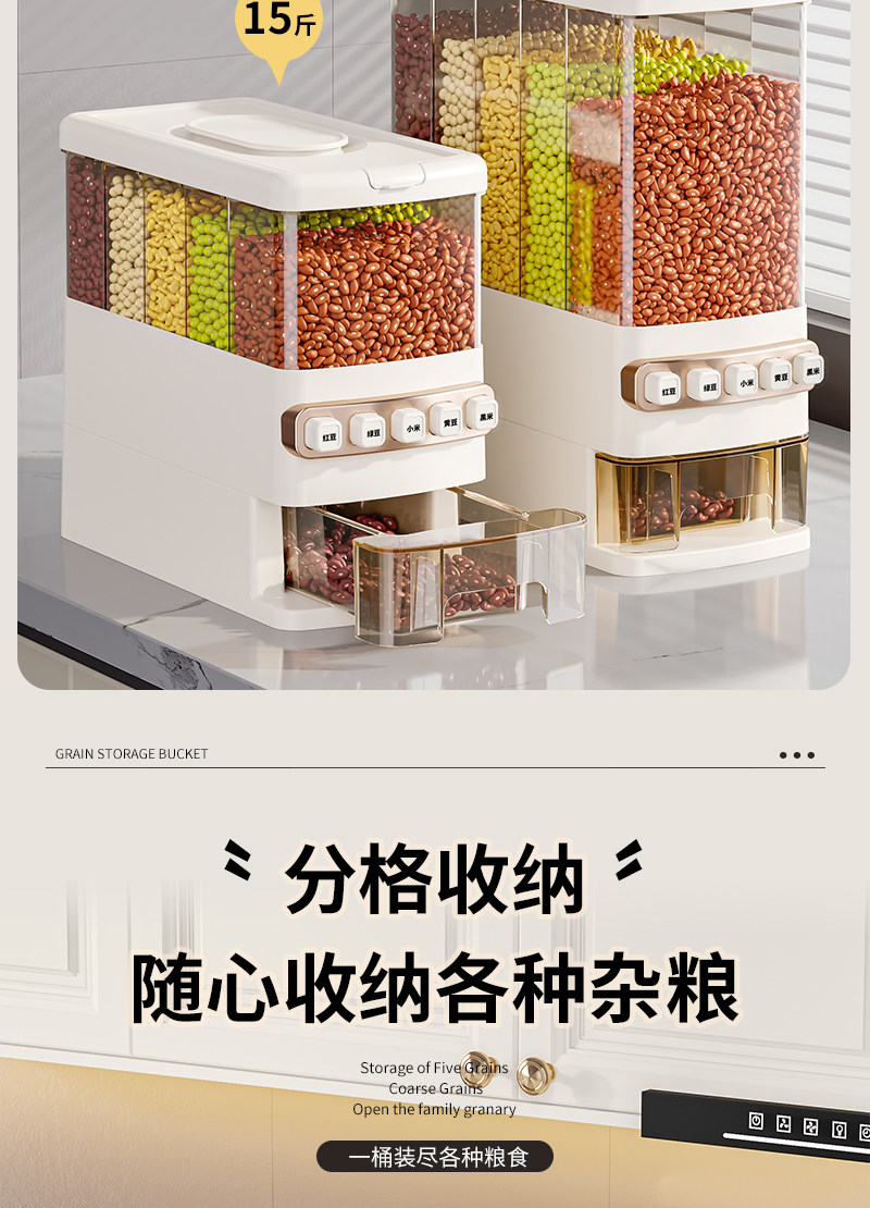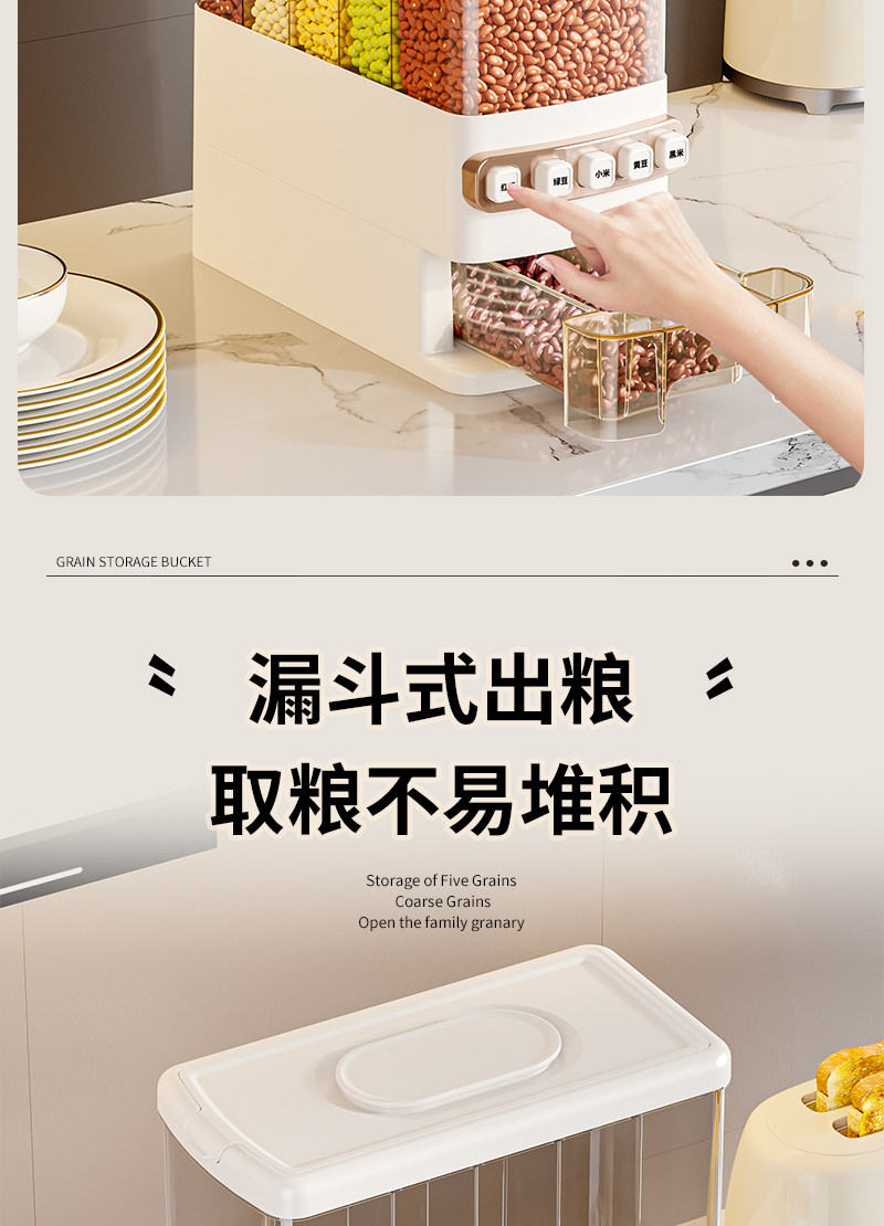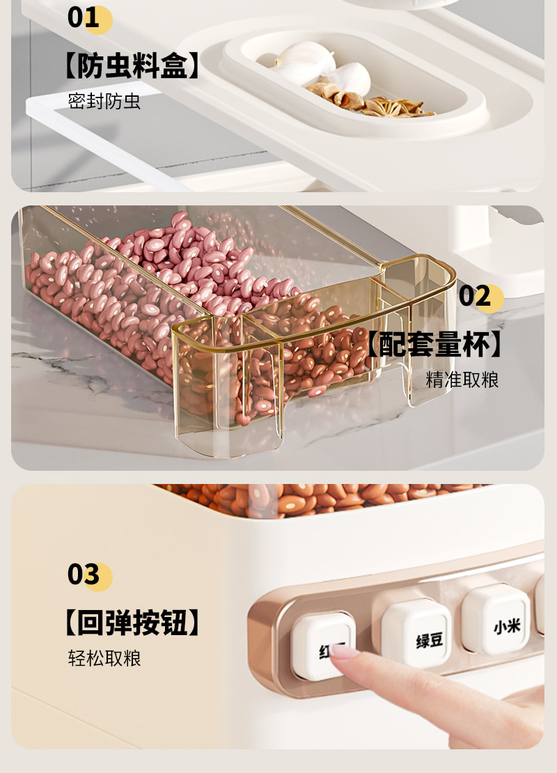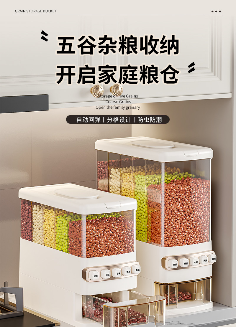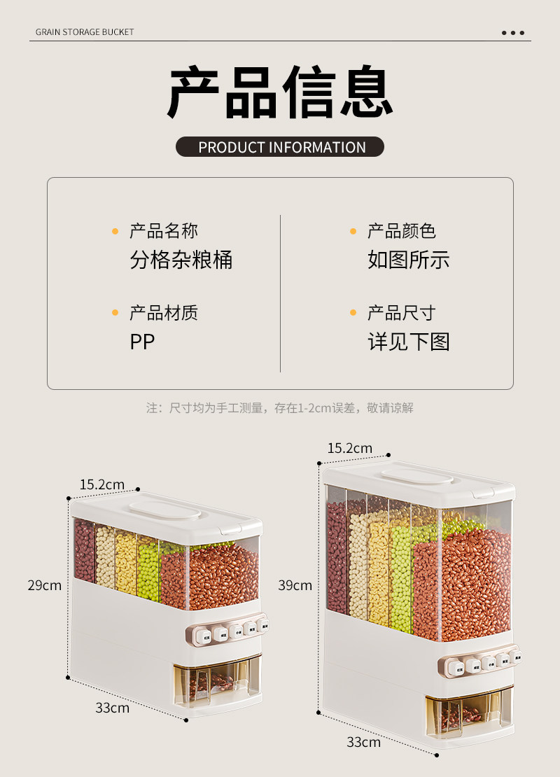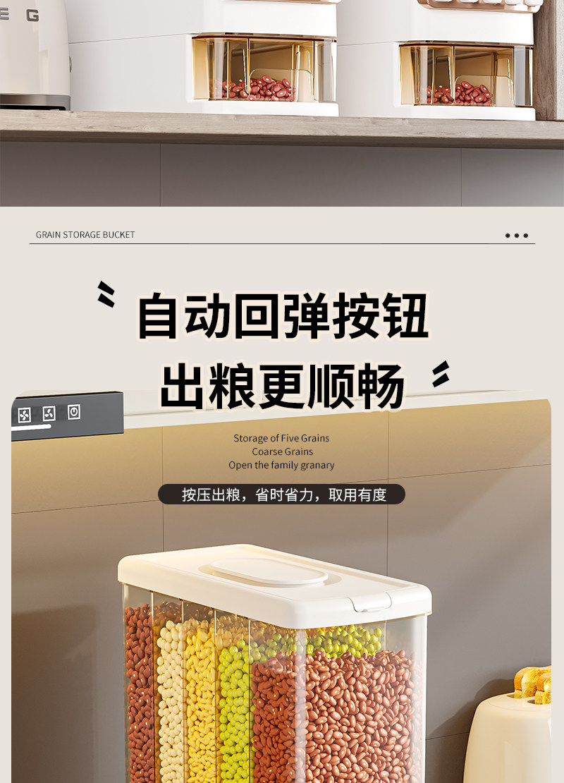 Grain Storage Box, Household Divided Rice Bucket, Large Rice Artifact, Whole Grain Classification Box, Food-Grade Push-Type