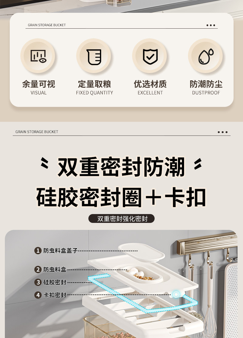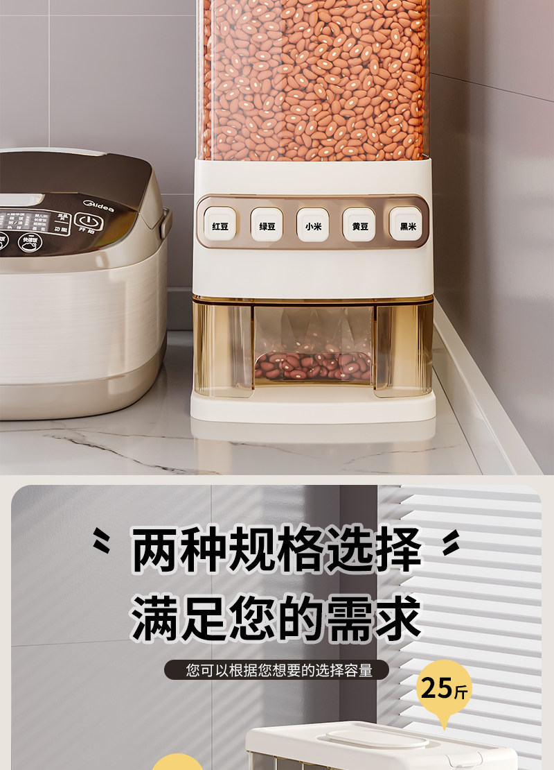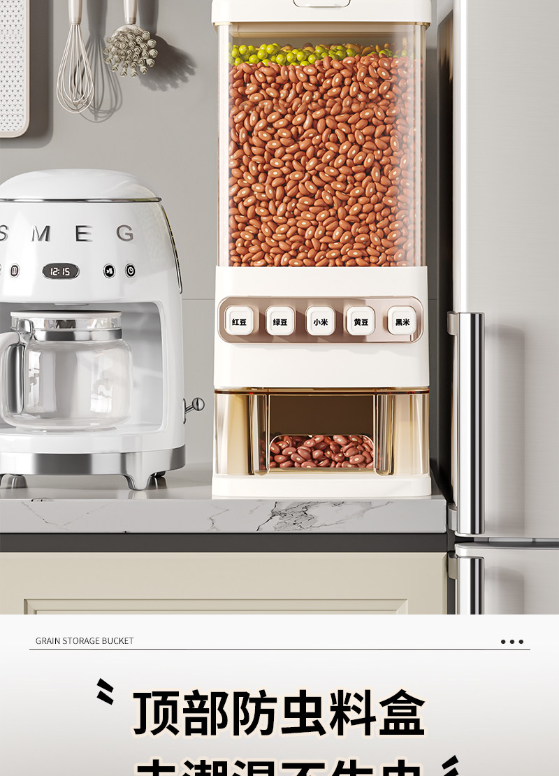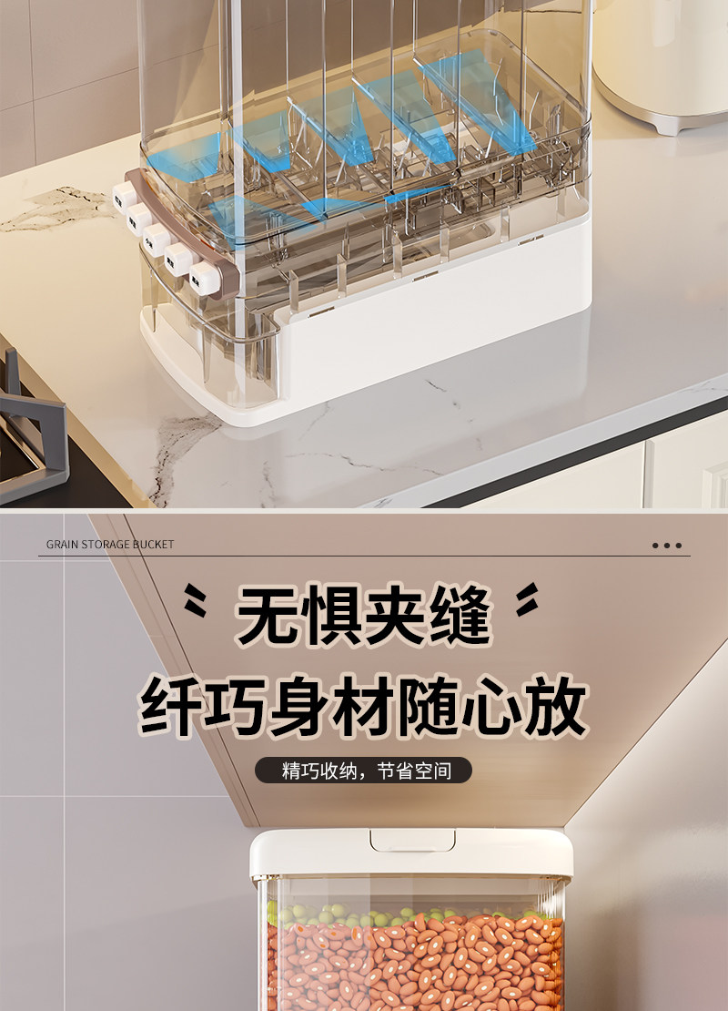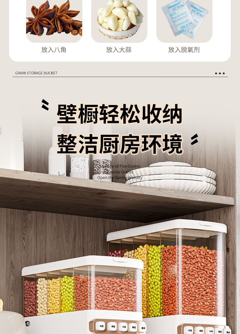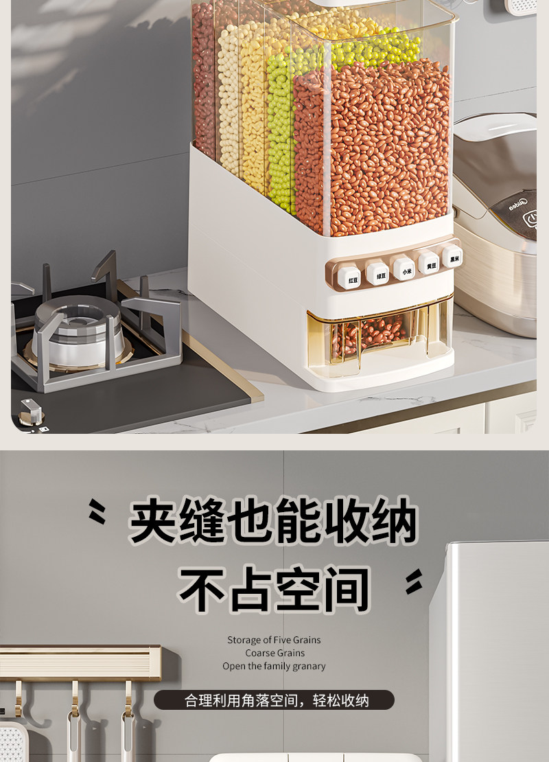 Grain Storage Box, Household Divided Rice Bucket, Large Rice Artifact, Whole Grain Classification Box, Food-Grade Push-Type