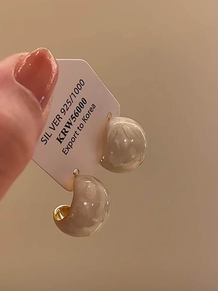 French Retro Milky White Drip Glaze Bean-Shaped Earrings, Artistic Oval Geometric Earrings, Versatile and Chic Earrings, Niche Design