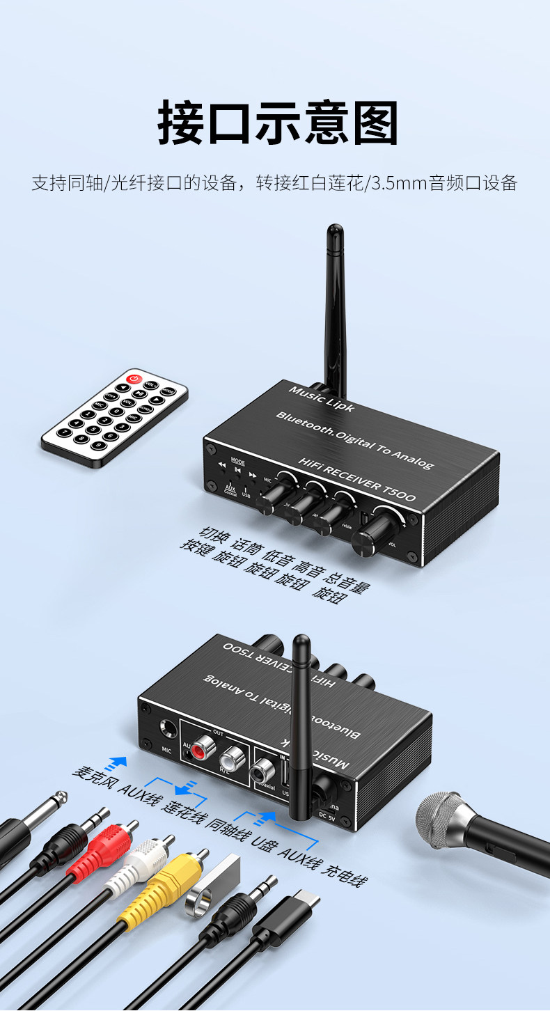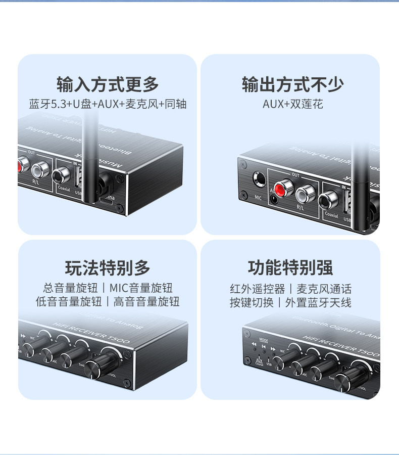 | Color Classification | [Bluetooth 5.3 Four Knobs] U Disk + Aux + Microphone + Coaxial,[Bluetooth 5.2 Three Knobs] U Disk + Aux + Optical Fiber + Coaxial,[Bluetooth 5.1 Single Knob] U Disk + Microphone + Coaxial,[Bluetooth 5.0 Single Knob] U Disk + Optical Fiber + Coaxial |