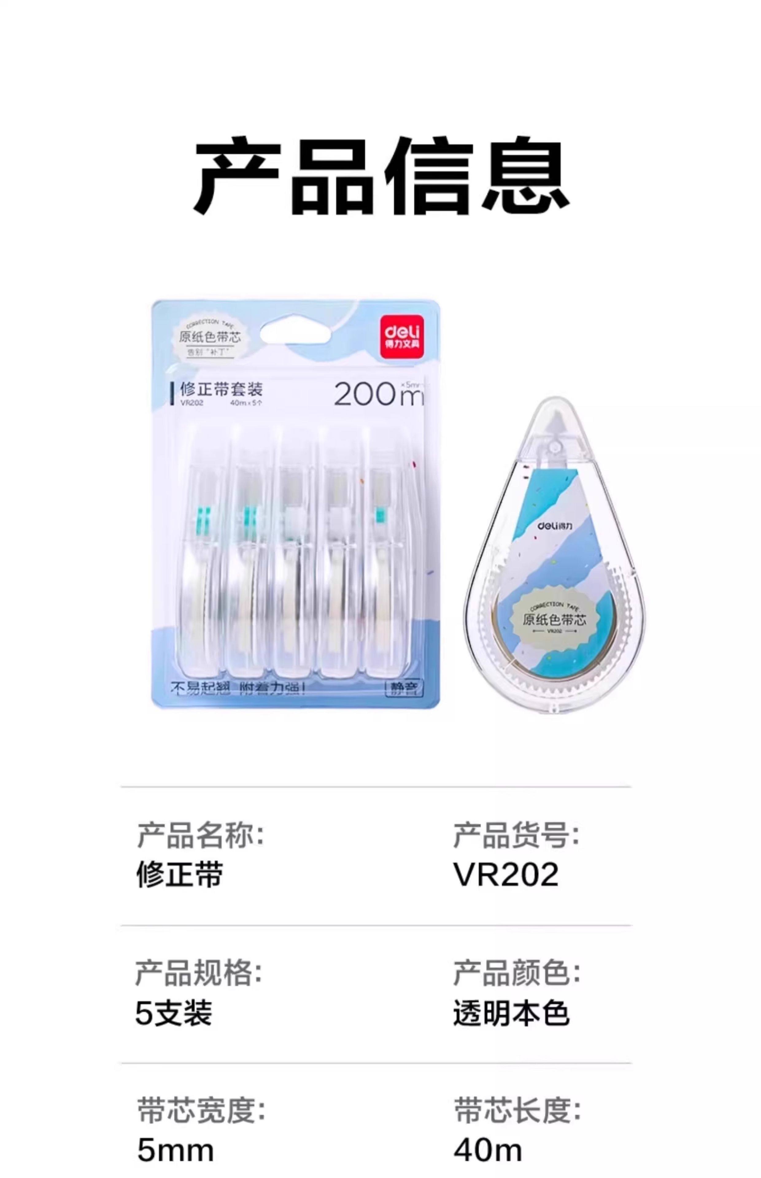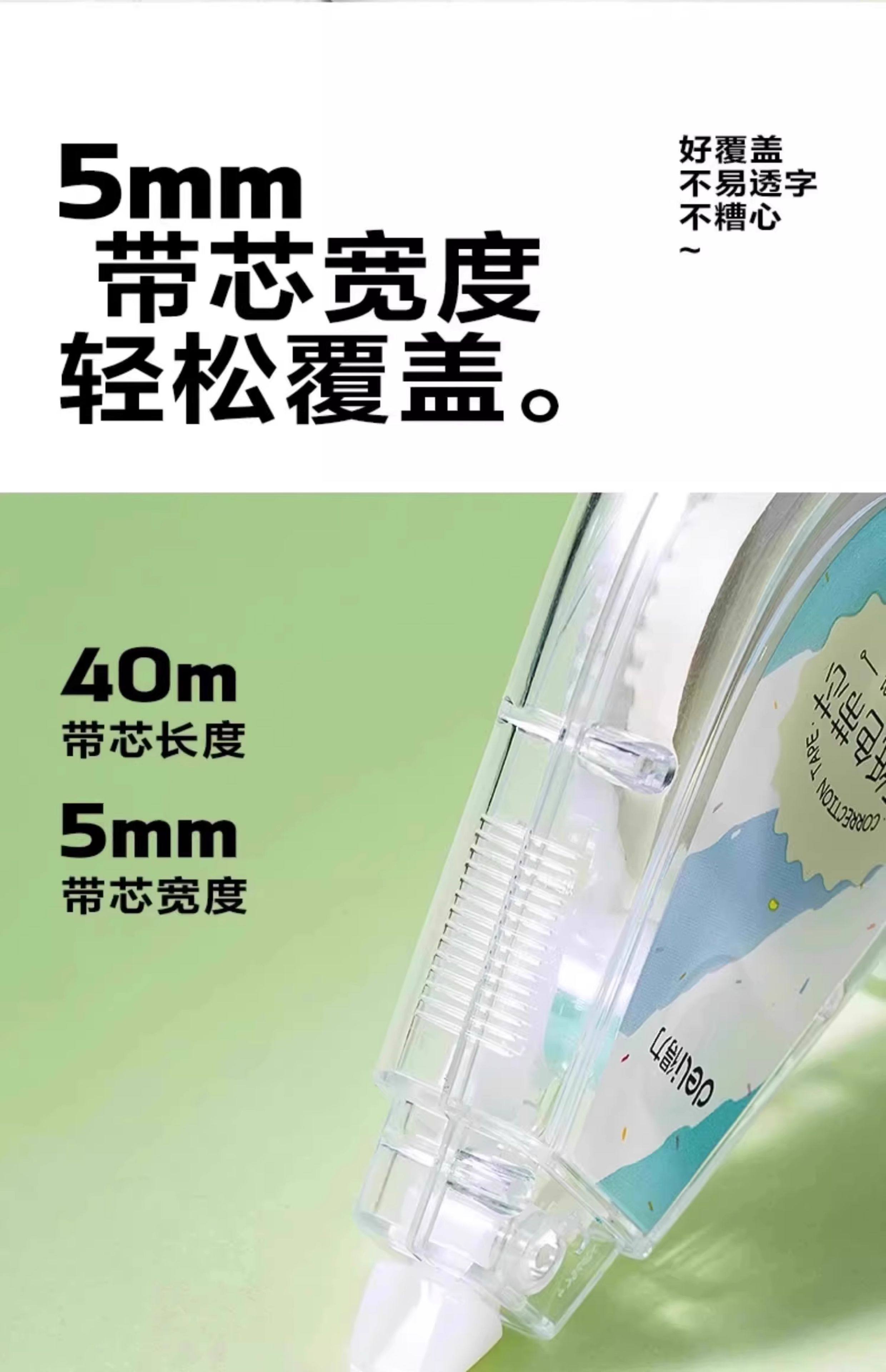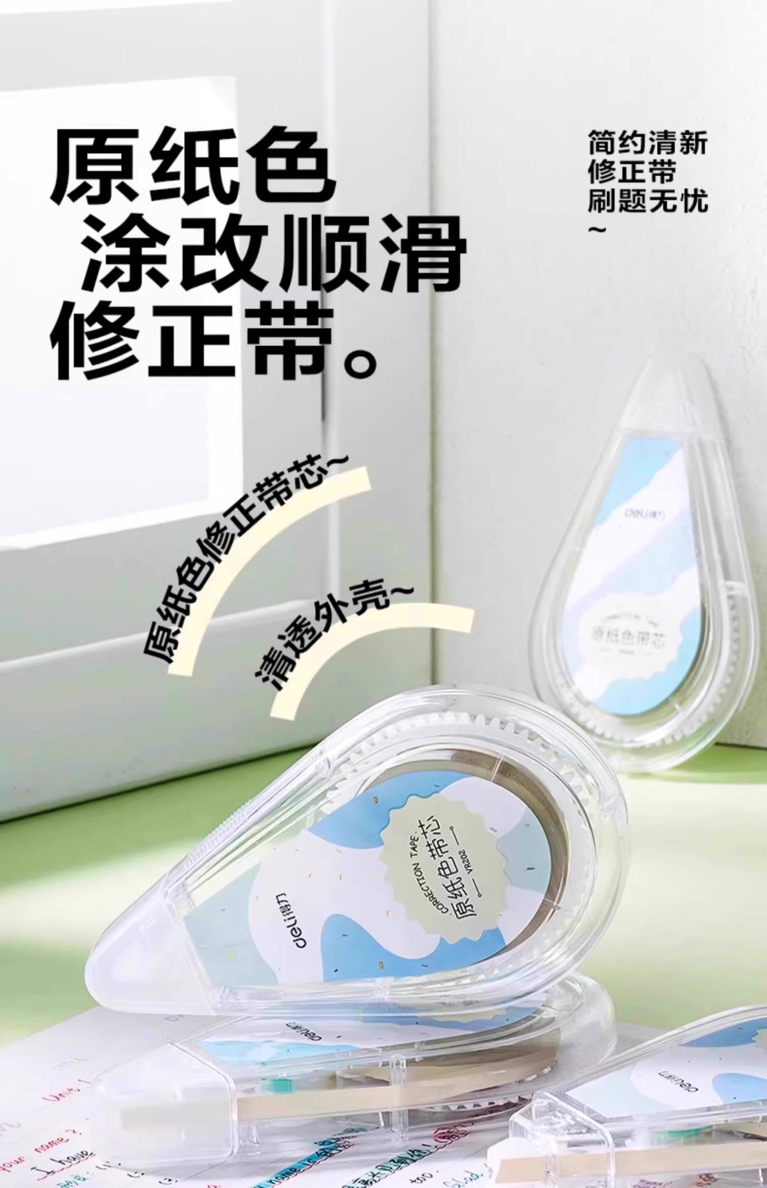 Deli Original Paper Color Correction Tape for Elementary School Students, Beige Invisible Correction Tape, Economical Pack, Smooth, Large Capacity, Eye-Protecting Correction Tape for Middle and High School Students, High-Quality Correction Tape, Correction Tape
