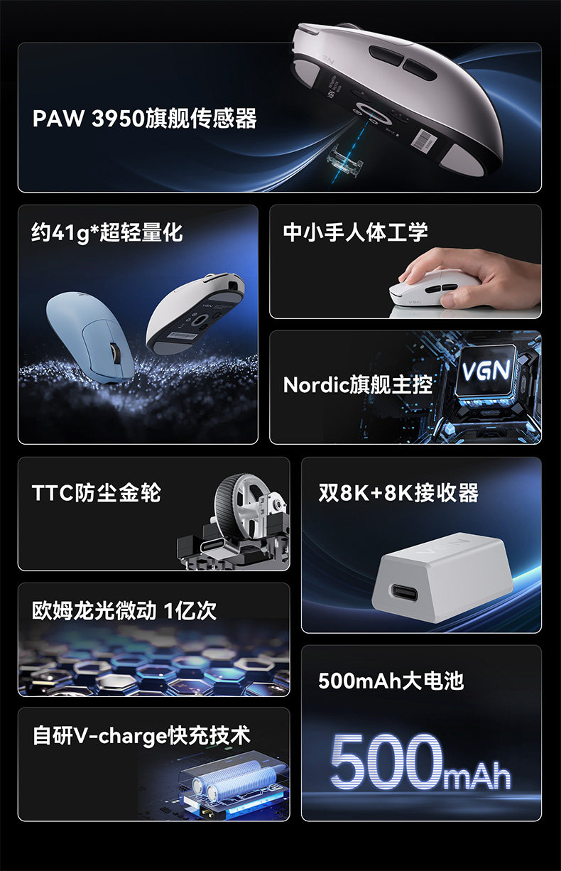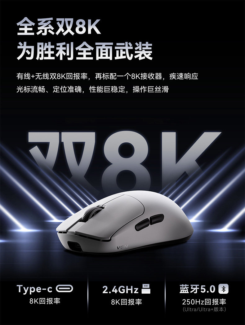 Vgn Feilong Y2 Ultra-Lightweight Wireless Bluetooth Three-Mode Ergonomic Gaming E-Sports Mouse Fearless Contract
