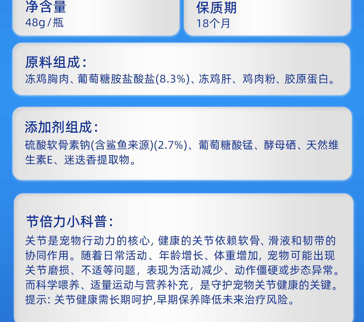 Vetwish Festival Double Strength Pet Joint Chondroitin Protects Joints, Moisturizes Bones, Repairs Cats' Bones, Strengthens Bones, and Supplements Calcium 48g