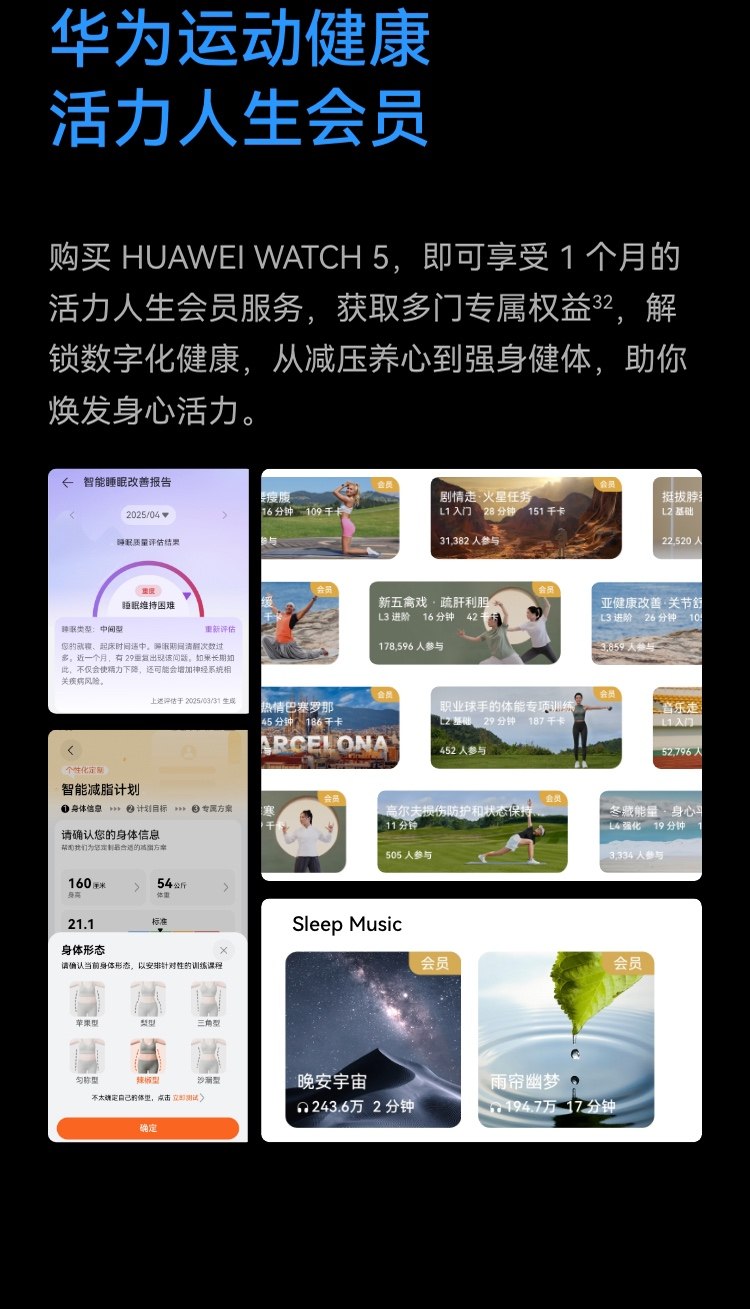 | Appearance Color | [10Th Anniversary Limited Edition] Huawei Watch5 [46mm Blue] Free Watch Strap/Protective Case + 100 Yuan Gift,[10Th Anniversary Limited Edition] Huawei Watch5 [42mm Blue] Free Watch Strap/Protective Case + 100 Yuan Gift,Huawei Watch 5 [Magic Moon Black] Comes with Free Strap/Case + Gifts,Watch 5 [42mm Aurora Green] Comes with Strap/Case + Gift Bag,Huawei Watch 5 [Venus White] Comes with Free Strap/Case + Gift Bag,Huawei Watch 5 [Nebula Apricot] Comes with Free Strap/Case + Gift Bag,Huawei Watch 5 [Dawn Gold] Comes with Free Strap/Case + Gift Bag,Huawei Watch 5 [Sky Black] Comes with Free Strap/Case + Gift Bag,Watch 5 [46mm Galaxy Blue] Comes with Strap/Case + Gift Bag,Huawei Watch 5 [Jupiter Brown.] Free Watch Strap/Case + Gift Bag,Huawei Watch 5 [Galaxy Purple] Comes with Free Strap/Case + Gift Bag,Huawei Watch 5 [Titanium Silver] Comes with Free Strap/Case + Gift Bag,Watch 5 [46Mm-Sky Black] + Black Titanium Alloy Strap*1,Watch 5 [46mm Jupiter Brown] + Silver Titanium Alloy Strap,Watch 5 [46mm Galaxy Purple] + Purple Titanium Alloy Strap,[Premium Package] Huawei Watch5 [Sky Black] + Space Exploration Same Style Black Steel Band,[Premium Package] Huawei Watch5 [Sky Black] + Exclusive Edition Black Steel Band,[Premium Package] Huawei Watch5 [Sky Black] + Black Gold Three Steel Belts,[Premium Package] Huawei Watch5 [Sky Black] + Exclusive Edition Titanium Black Strap,[Premium Package] Huawei Watch5 [Jupiter Brown] + Exclusive Edition Titanium Silver Strap,[Premium Package] Huawei Watch5 [Jupiter Brown] + Titanium Sky Silver Same Style Strap,[Premium Package] Huawei Watch5 [Jupiter Brown] + Titanium Silver Strap,[Premium Package] Huawei Watch5 [Jupiter Brown] + Black Gold Three Steel Belts,Xinyue Gift Box [42mm Magic Moon Black],Xinyue Gift Box [42mm Gold Star White],Xinyue Gift Box [46mm Sky Black],Xinyue Gift Box [46mm Jupiter Brown],Xinyue Gift Box [46mm Galaxy Purple],Huawei Watch 5 [Magic Moon Black] Comes with Free Strap/Case + Gift Bag,Watch 5 [42mm Aurora Green] Comes with Strap/Case + Gift,Huawei Watch 5 [Venus White] Comes with Free Strap/Case + Gifts,Huawei Watch 5 [Nebula Apricot] Comes with Free Strap/Case + Gift,Huawei Watch 5 [Dawn Gold] Comes with Free Strap/Case + Gift,Huawei Watch 5 [Sky Black] Comes with Free Strap/Case + Gifts,Watch 5 [46mm Galaxy Blue] Comes with Strap/Case + Gift,Huawei Watch 5 [Jupiter Brown.] Free Watch Strap/Case + Gift,Huawei Watch 5 [Galaxy Purple] Comes with Free Strap/Case + Gifts,Huawei Watch 5 [Titanium Silver] Comes with Free Strap/Case + Gifts,Watch 5 [46Mm-Sky Black] + Black Titanium Alloy Strap,Watch 5 [46mm Jupiter Brown] + Silver Titanium Alloy Strap*1,Watch 5 [46mm Galaxy Purple] + Purple Titanium Alloy Strap*1,[Premium Package] Huawei Watch5 [Sky Black] + Space Exploration Same Style Black Steel Band*1,Ultimate Package] Huawei Watch5 [Sky Black] + Exclusive Edition Black Steel Band,[Premium Package] Huawei Watch5 [Sky Black] + Black Gold Three Steel Belts*1,[Premium Package] Huawei Watch5 [Sky Black] + Exclusive Edition Titanium Black Strap*1,[Premium Package] Huawei Watch5 [Jupiter Brown] + Exclusive Edition Titanium Silver Strap*1,[Premium Package] Huawei Watch5 [Jupiter Brown] + Titanium Silver Same Style Strap*1,[Premium Package] Huawei Watch5 [Jupiter Brown] + Titanium Silver Strap*1,[Premium Package] Huawei Watch5 [Jupiter Brown] + Black Gold Three Steel Belts*1,Xinyue Gift Box Set [42mm Venus White],Xinyue Gift Box Set [46mm Sky Black],Xinyue Gift Box Set [46mm Jupiter Brown],Xinyue Gift Box Set [42mm Magic Moon Black],Huawei New Year Gift Box Set [42mm Aurora Green] + New Year Limited Gifts,Huawei Lunar New Year Gift Set [42mm Nebula Apricot] + Limited Edition Lunar New Year Gifts,Huawei New Year Gift Box Set [42mm Dawn Gold] + New Year Limited Gifts,Huawei New Year Gift Box Set [46mm Sky Black] + New Year Limited Gifts,Huawei New Year Gift Box Set [46mm Galaxy Blue] + New Year Limited Gifts,Huawei New Year Gift Box Set [46mm Galaxy Purple] + New Year Limited Gifts,Huawei New Year Gift Box Set [46mm Titanium Silver] + New Year Limited Gift,Christmas Limited Gift Box [46mm Sky Black],Christmas Limited Gift Box [42mm Venus White],Christmas Limited Gift Box [46mm Jupiter Brown],Christmas Limited Gift Box [42mm Aurora Green] |