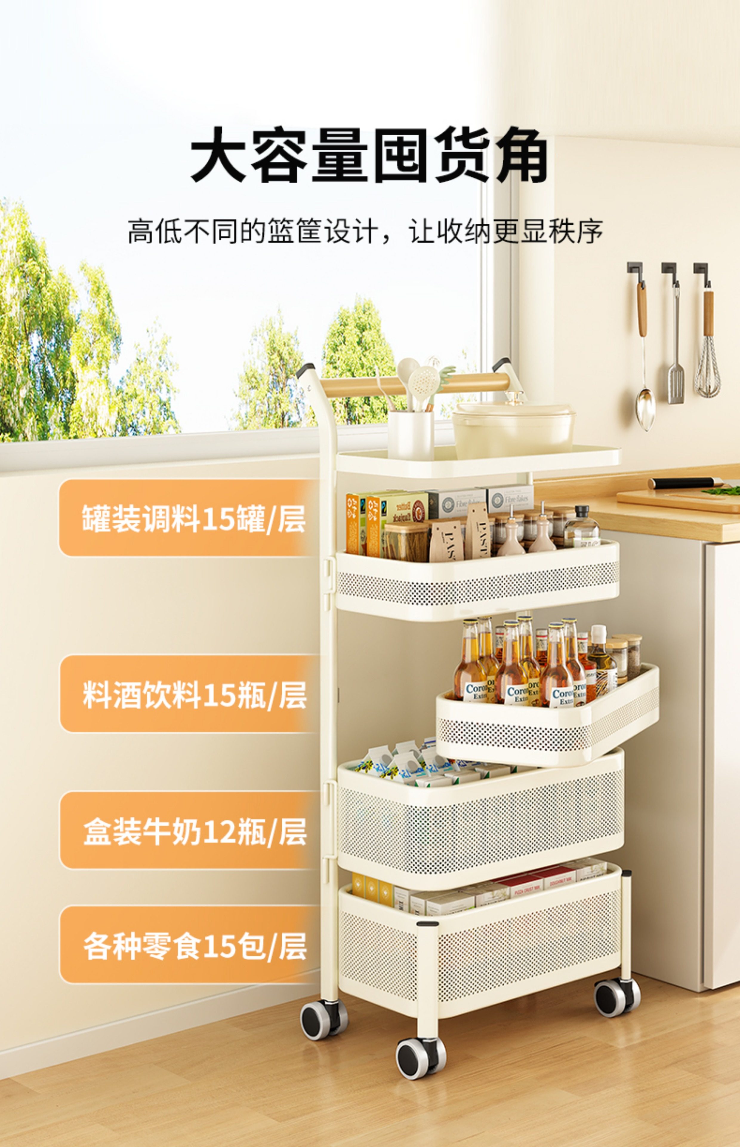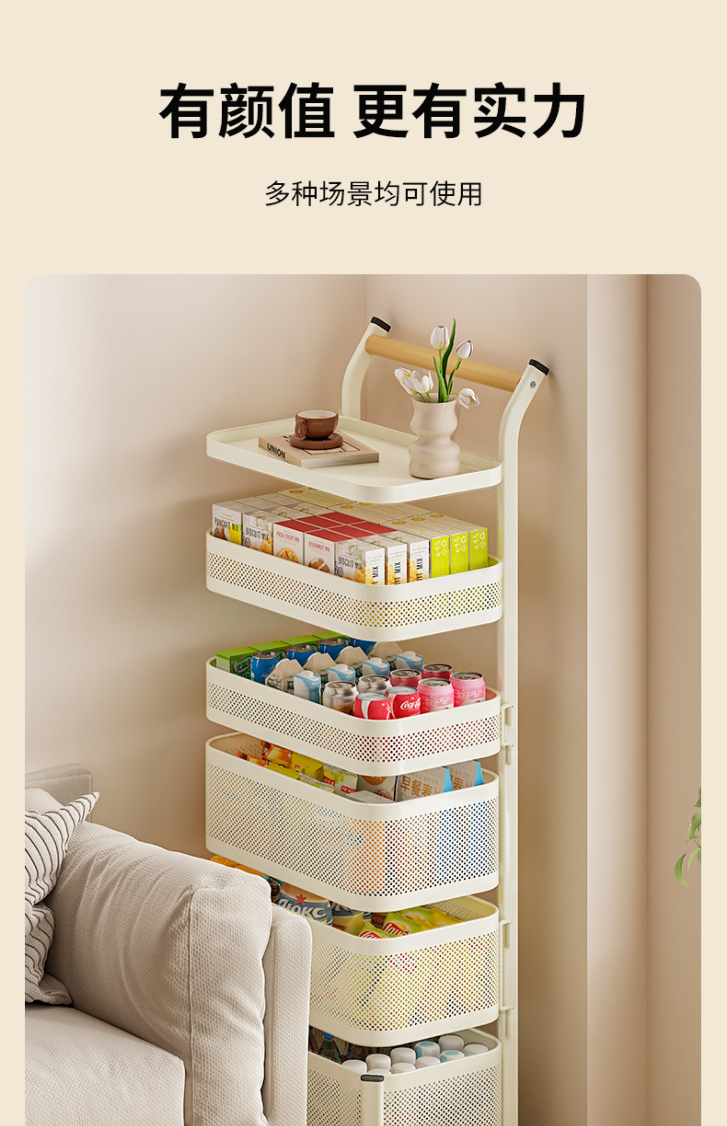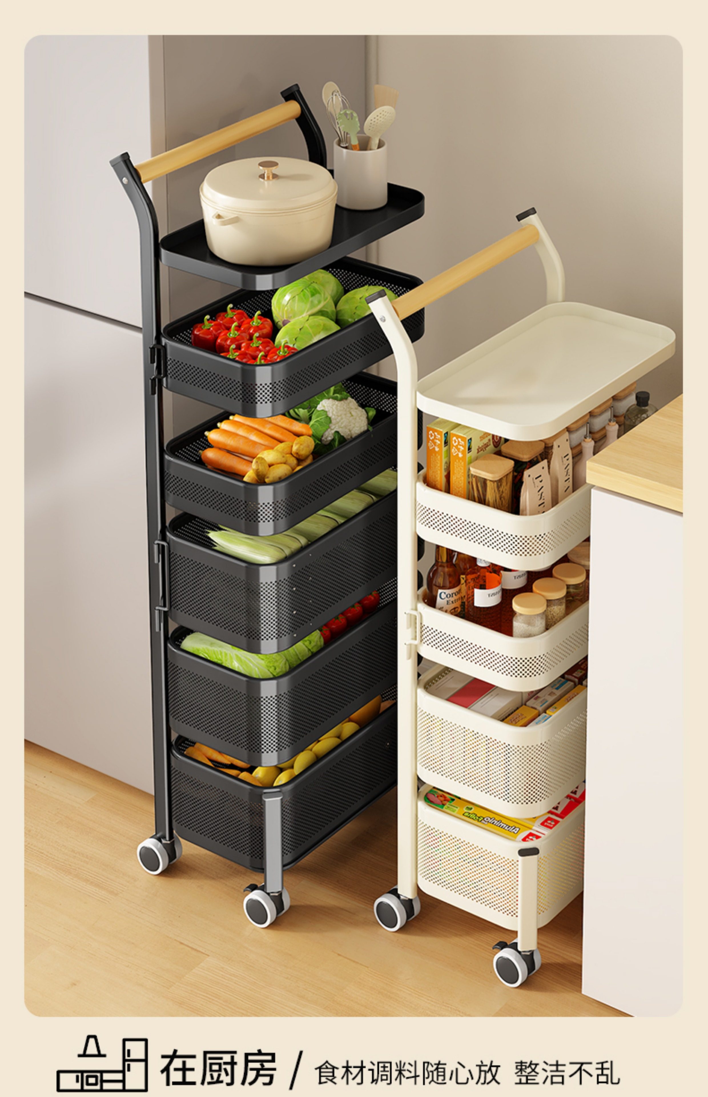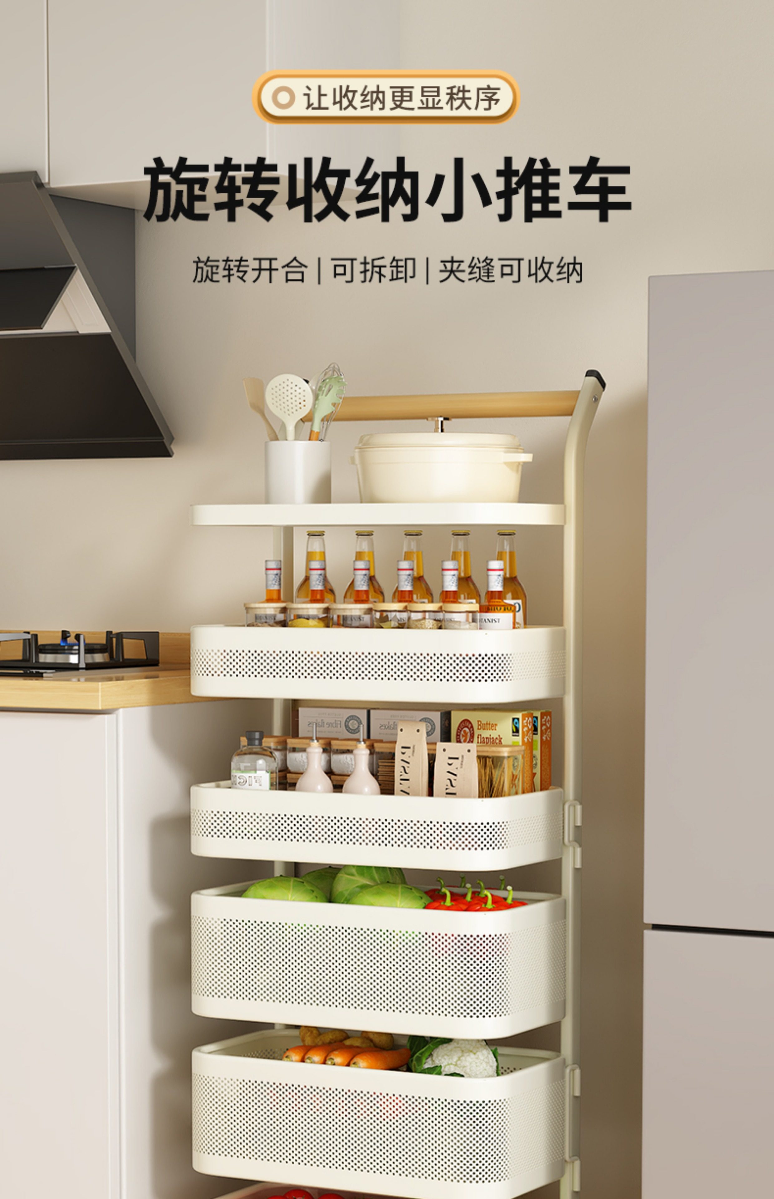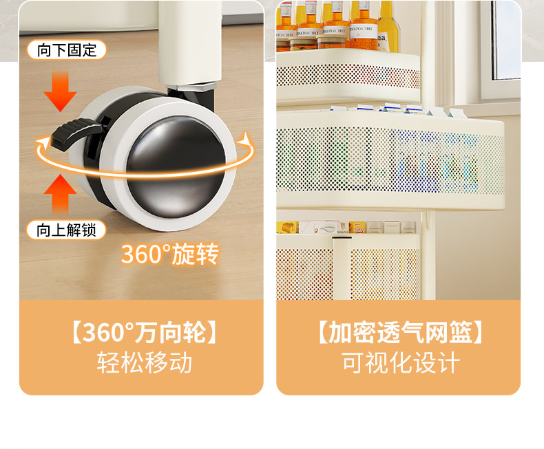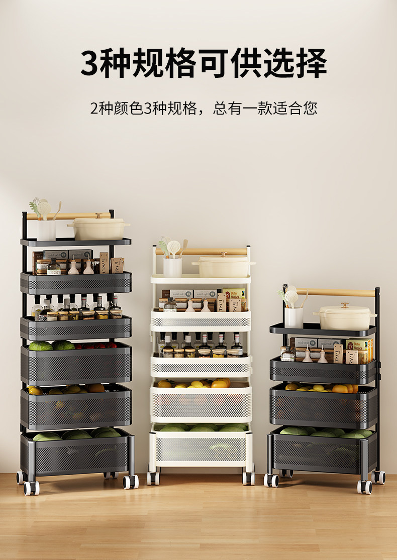 Kitchen Storage Rack, Floor-Standing Trolley, Multi-Layer Rotating Vegetable Storage Rack, Household Snack Gap Organizer, Movable