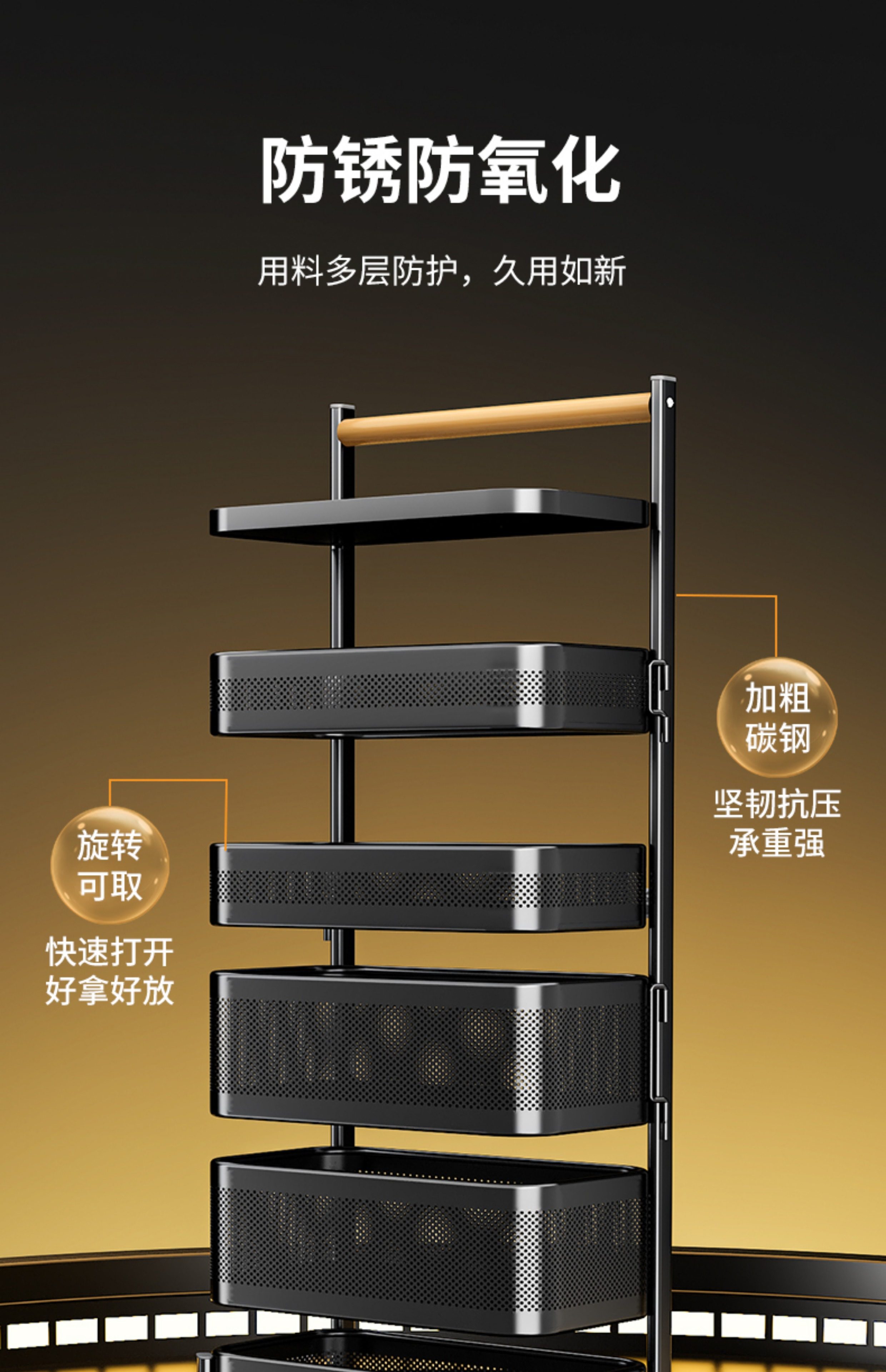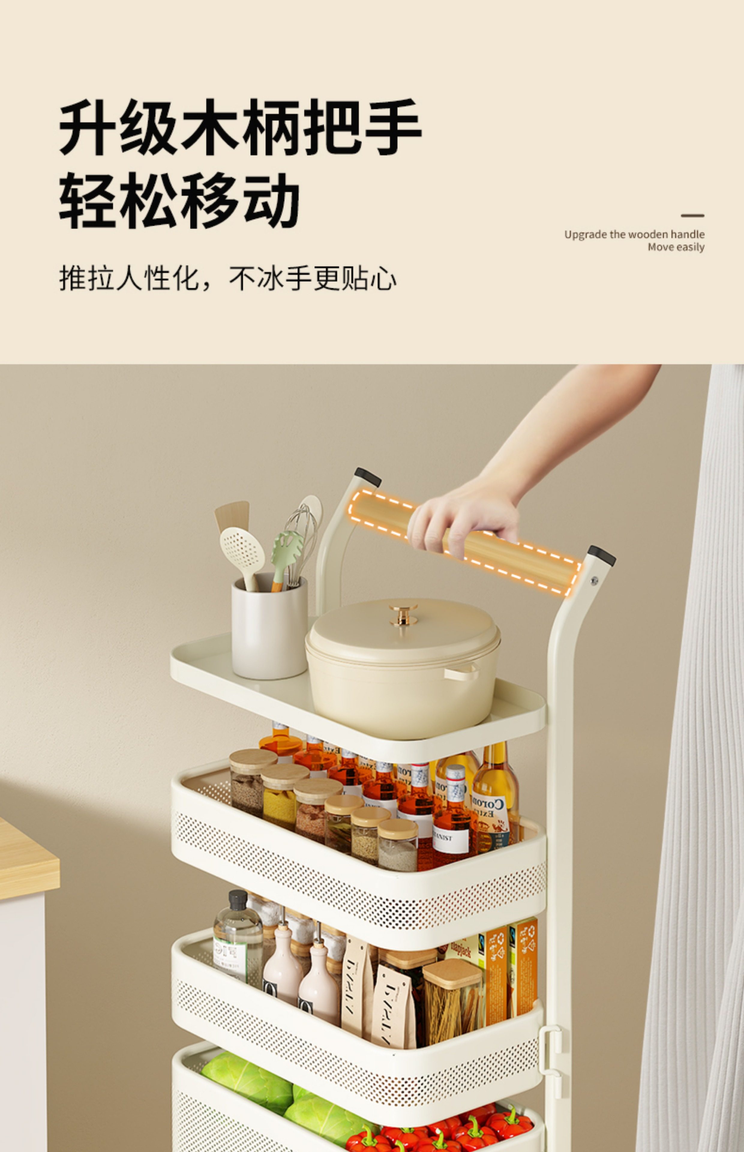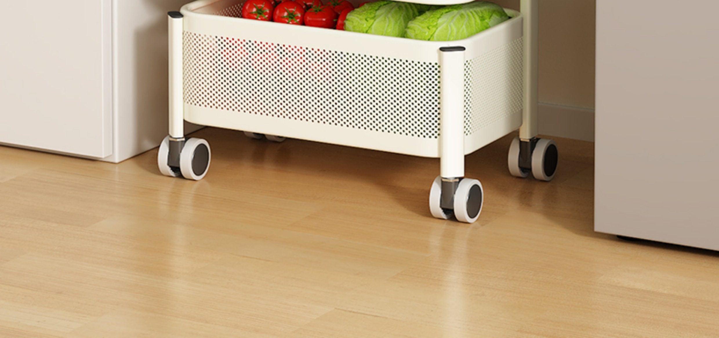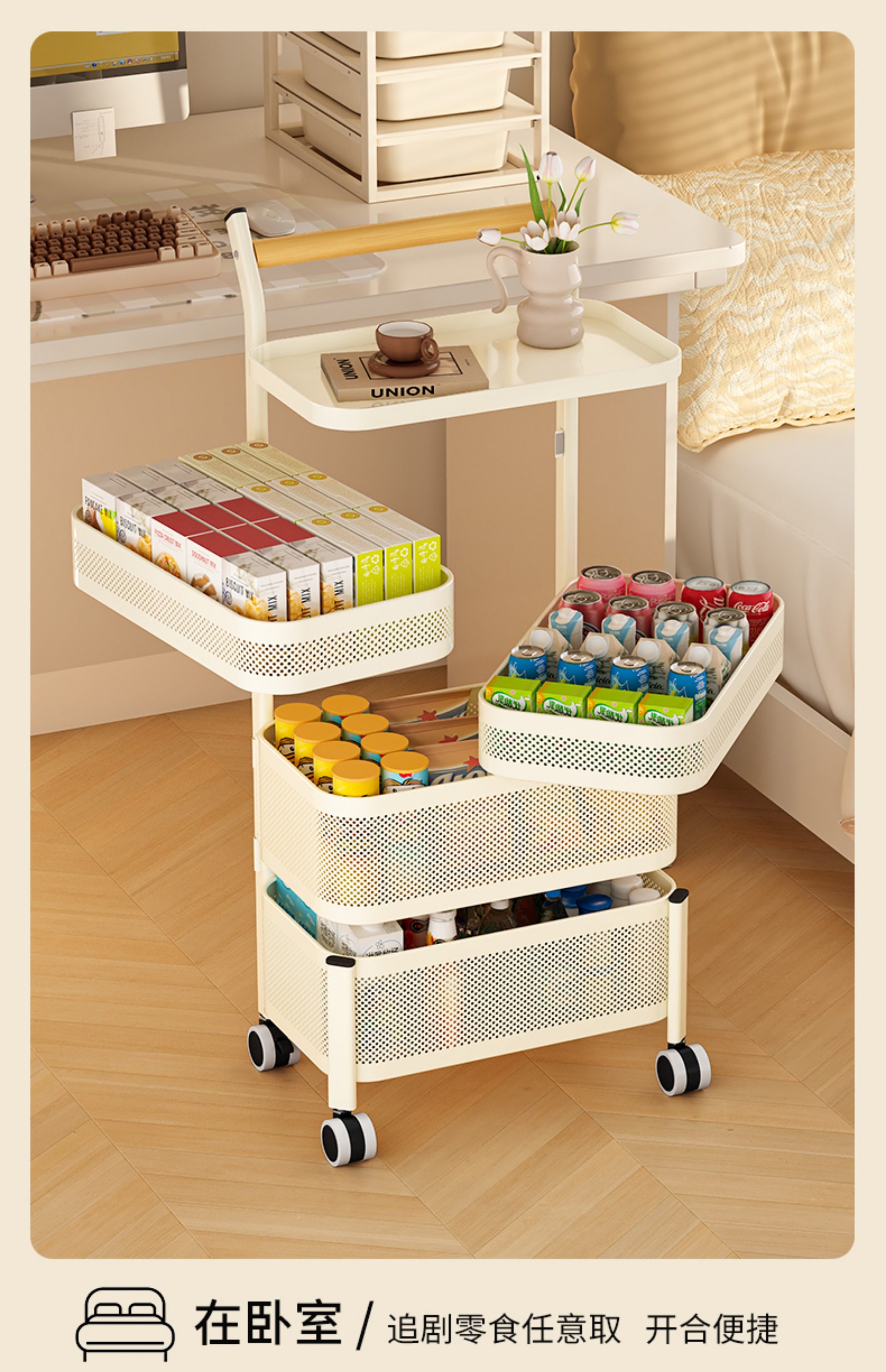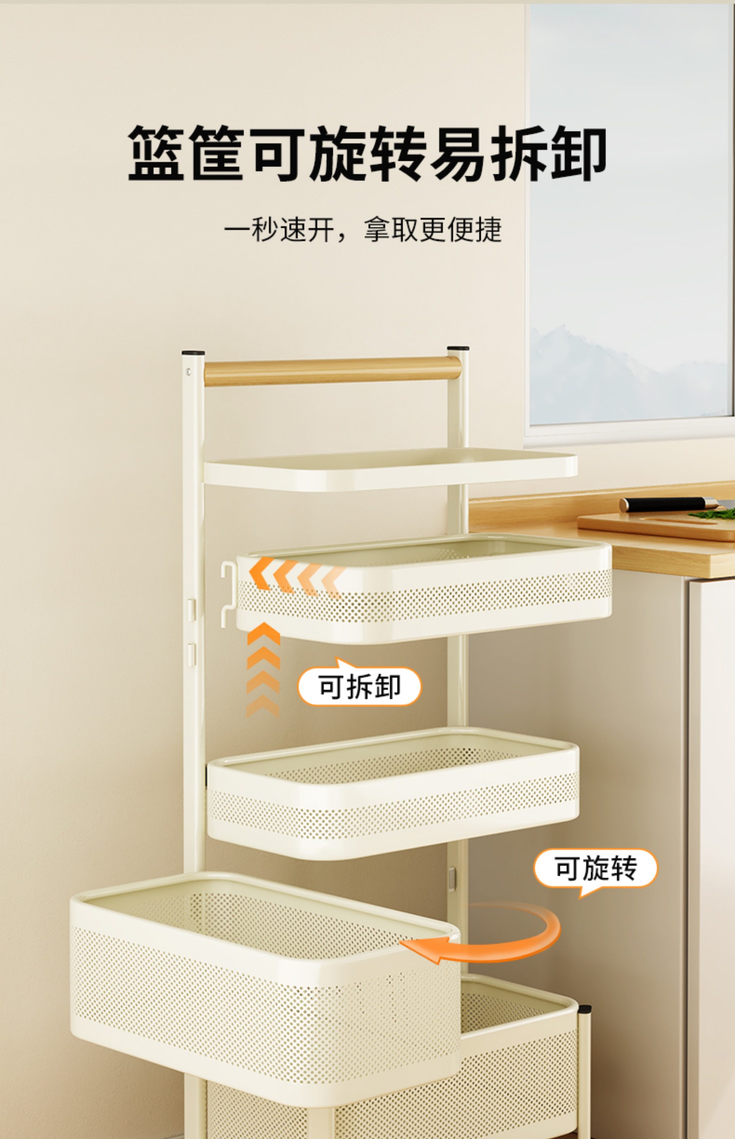 Kitchen Storage Rack, Floor-Standing Trolley, Multi-Layer Rotating Vegetable Storage Rack, Household Snack Gap Organizer, Movable