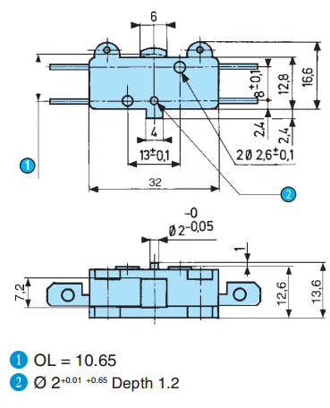Crouzet Gao North 83106 Micro Switch Small Self-Reset Inching Limit 5A Four-Legged with Pulleys