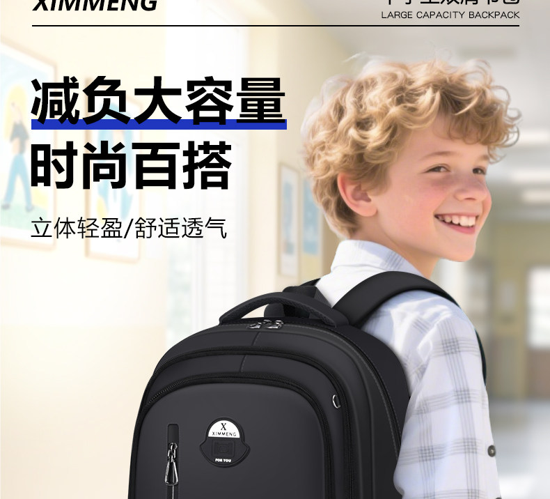 Middle School Student Backpack 2025 Boys' Junior High School Students' High School Students' Lightweight Large-Capacity Backpack Men's Burden-Reducing Spine-Protecting Men's Model