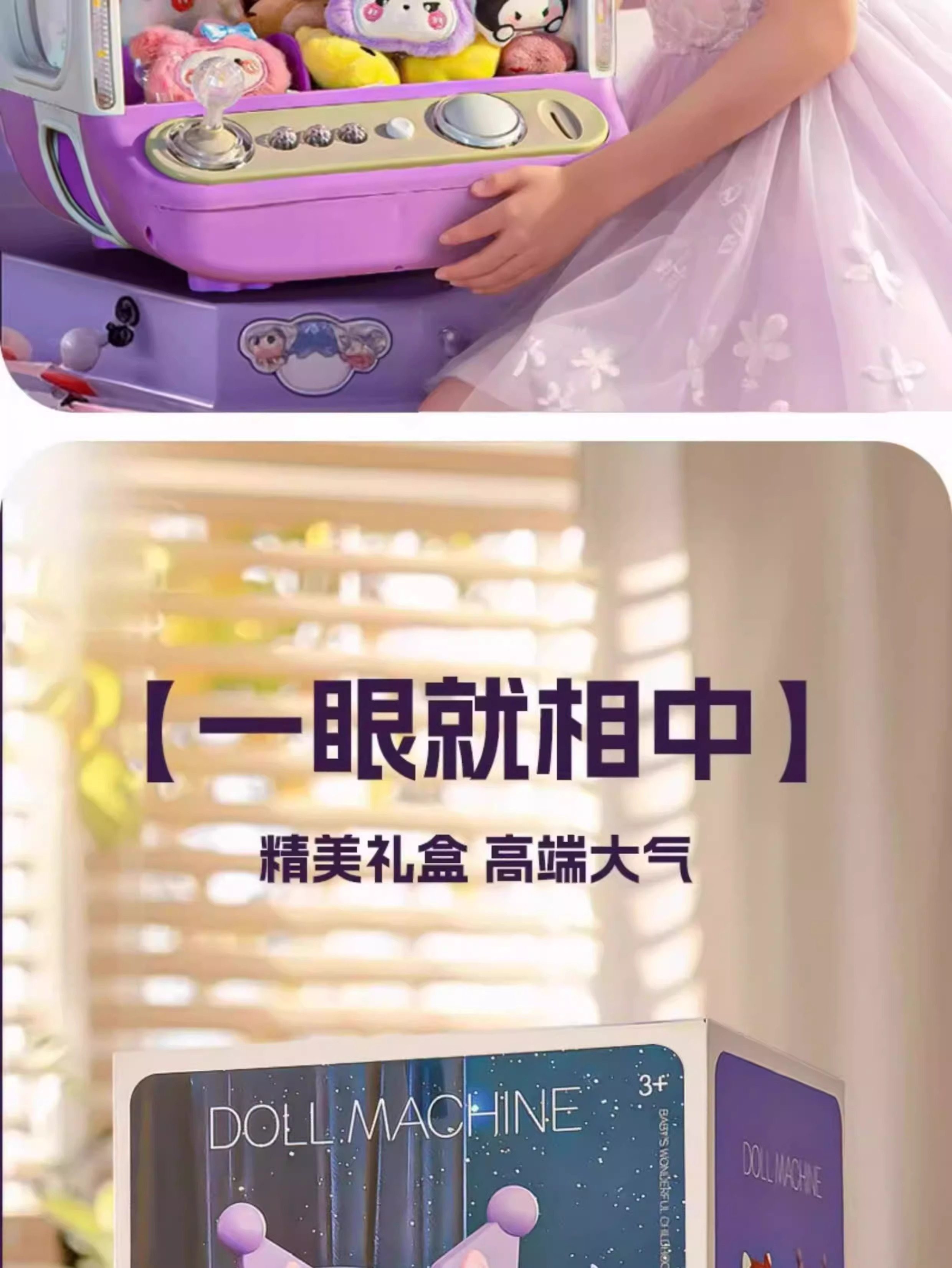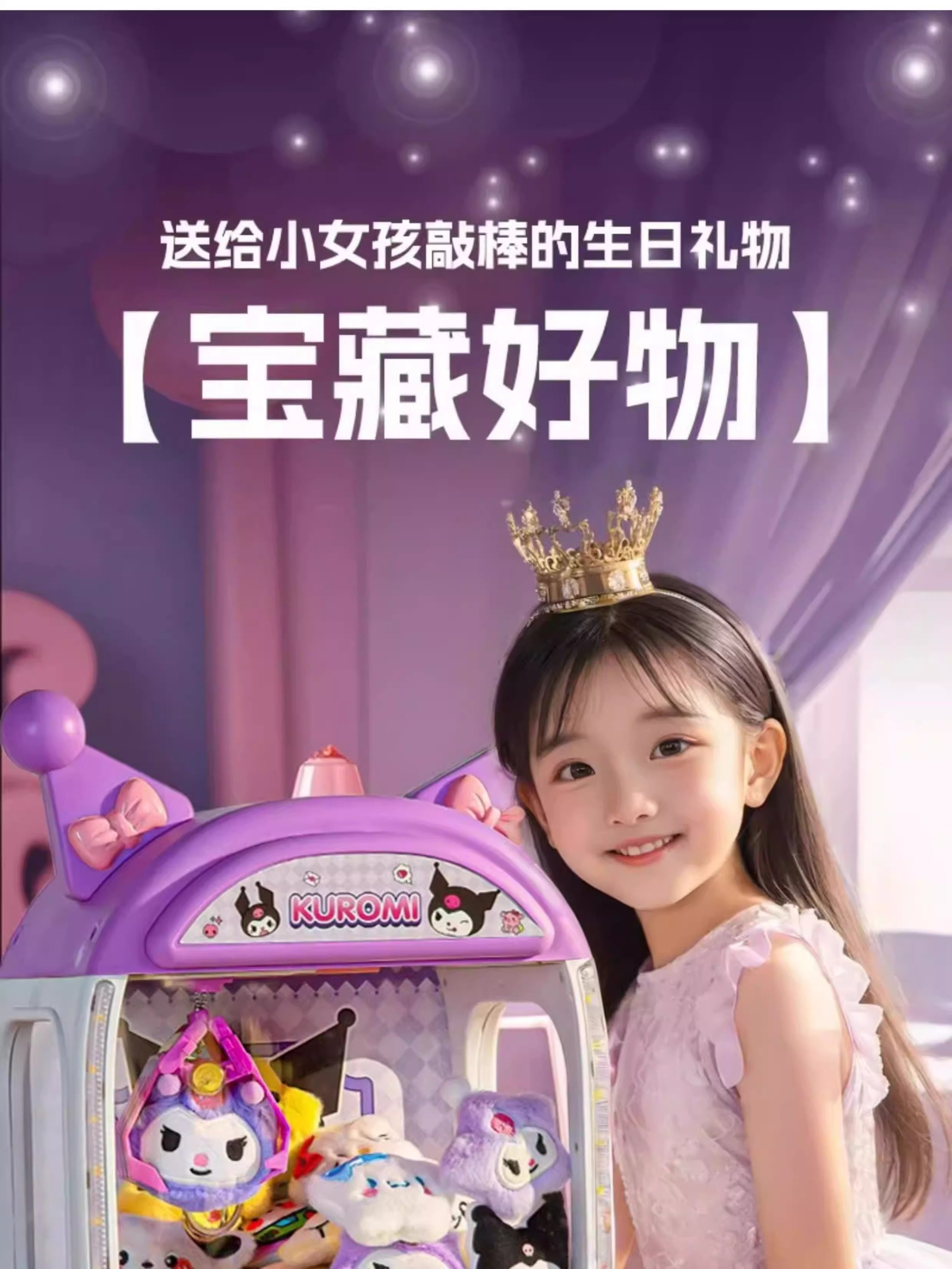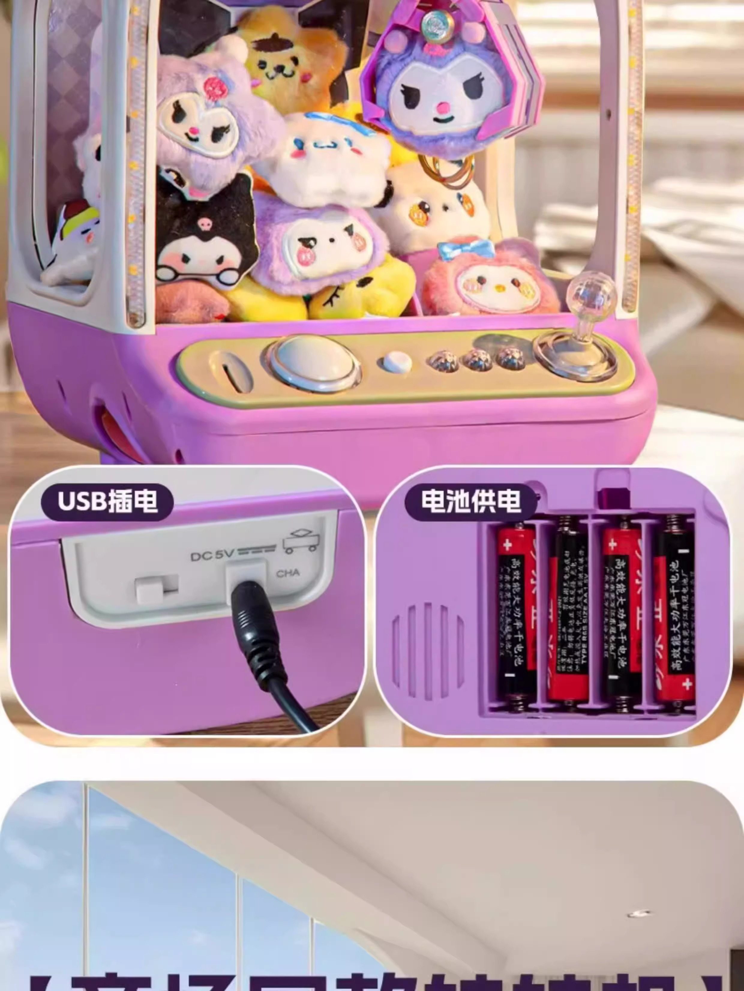 2025 New Claw Machine Toy with Small Plushies for Home Use, Kumi Purple, Girls' New Year's Gift