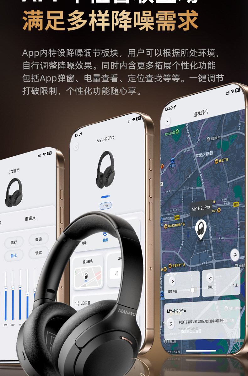 Manayo H20Pro Over-Ear Bluetooth Headphones Wireless Noise-Cancelling Hifi Berlin Sound Quality with Built-In Memory