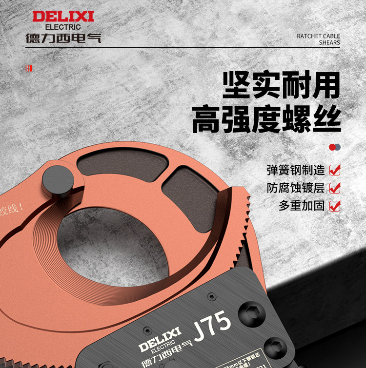 | Color Classification | Delixi Electric - J40 Flagship Ratcheting Cable Cutter (Includes Tool Kit) - 5 Year Warranty,Delixi Electric - J52 Flagship Ratchet Cable Cutter (Includes Tool Kit) - 5 Year Warranty,Delixi Electric - J55 Multifunctional Flagship Ratcheting Cable Cutter (Includes Tool Kit) - 5-Year Warranty,Delixi Electric - J75 Flagship Ratcheting Cable Cutter (Includes Tool Kit) - 5 Year Warranty,Delixi Electric - J95 Flagship Ratchet Cable Cutter (Includes Tool Kit) - 5 Year Warranty,Delixi Electric - J100 Flagship Ratcheting Cable Cutter (Includes Tool Kit) - 5 Year Warranty,Delixi Electric - J130 Flagship Ratcheting Cable Cutter (Includes Tool Kit) - 5 Year Warranty |