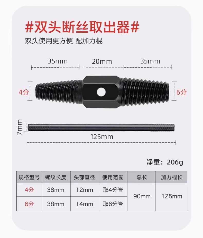 Faucet Broken Thread Extractor, Quarter-Inch Screw Broken Water Pipe Double-Ended Reverse Thread Extractor, Broken Thread Tap, Six-Point Thread Extractor