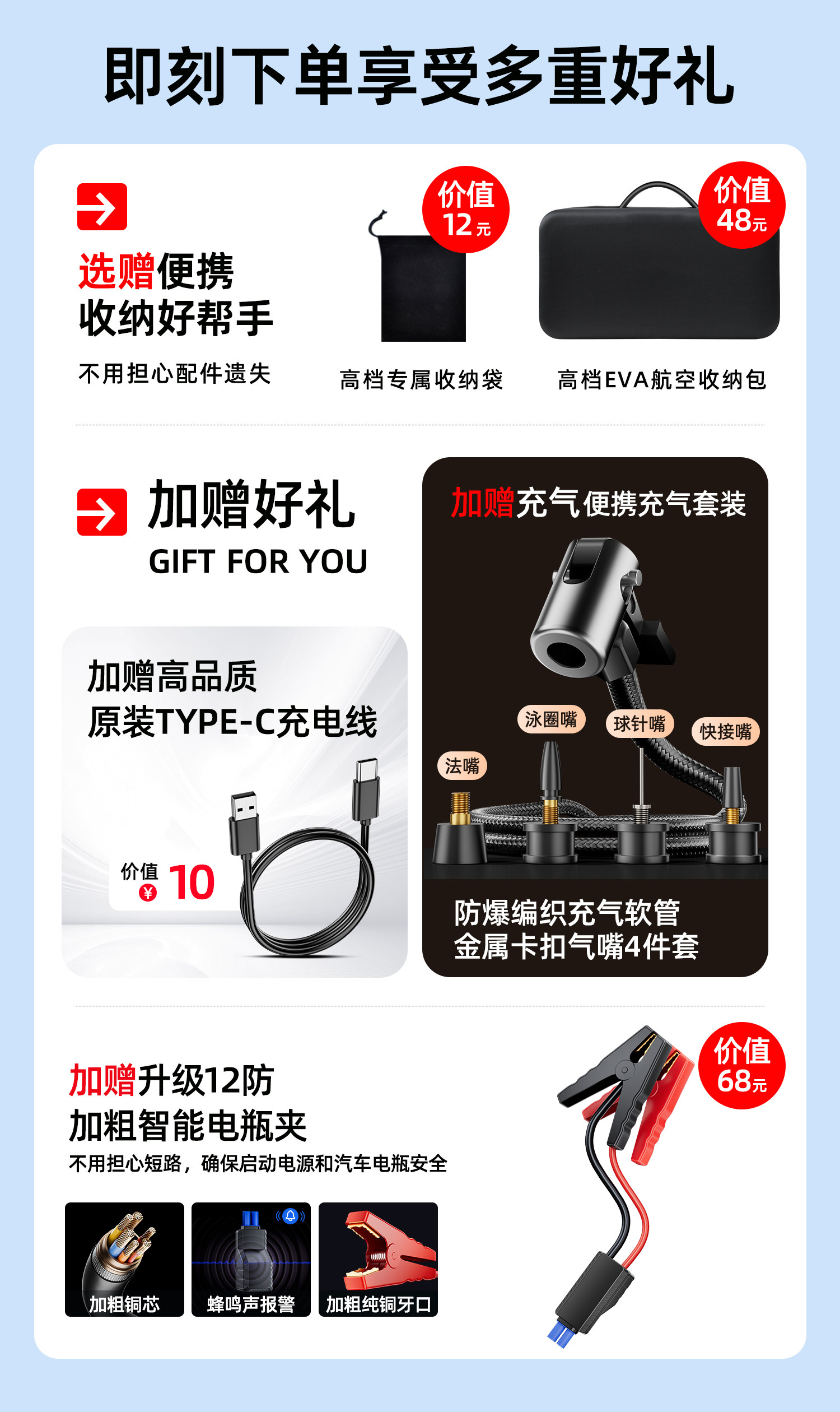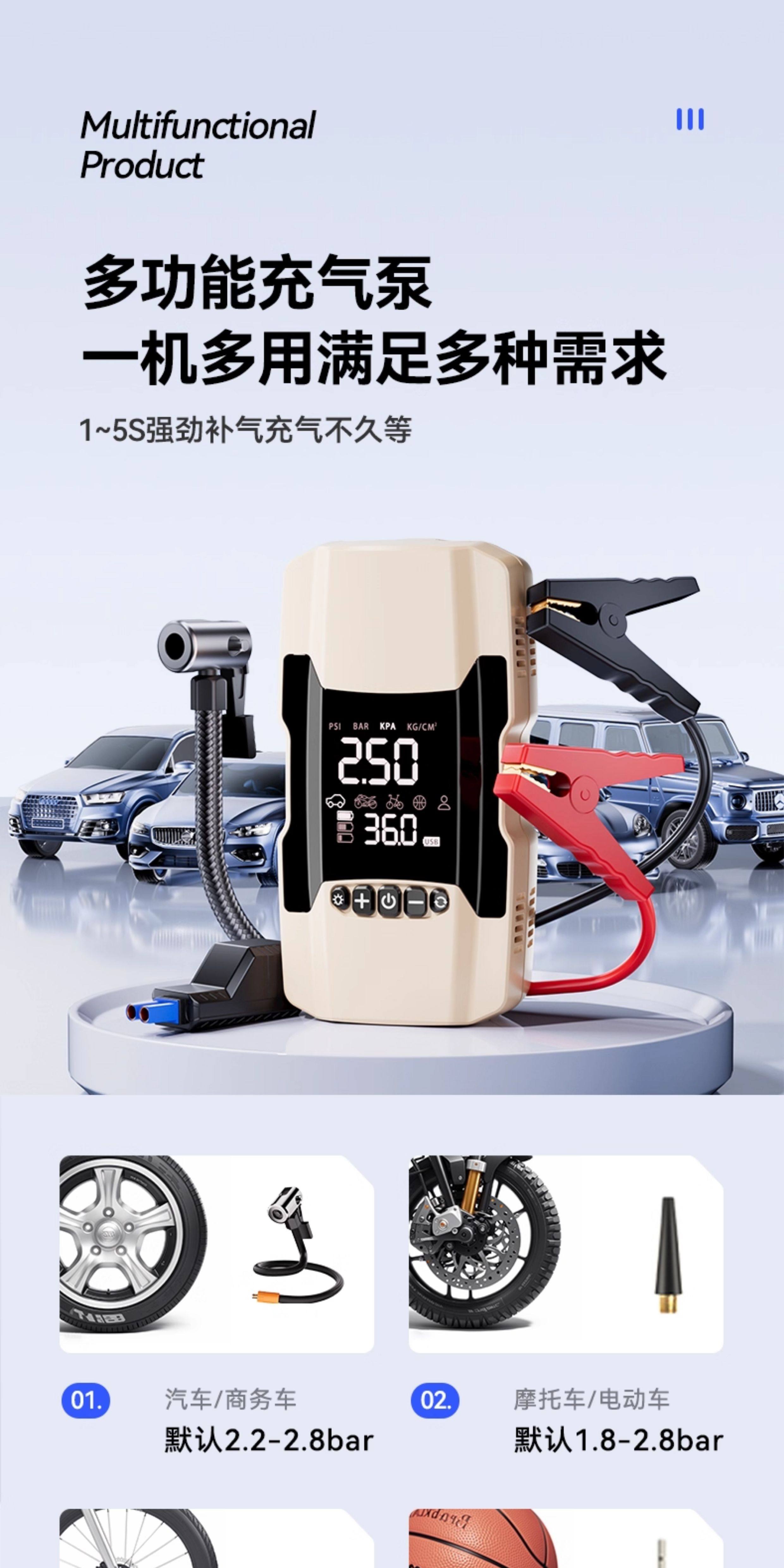 | Color Classification | [Add to Favorites + Cart] Ships as Fast as the Same Day! Enjoy a 90-Day Free Trial.,[Smart Air Pump] Quick Air Replenishmentâ Emergency Lighting + Fast Charging Nitrogen + Automatic Charging and Stopping + Free Inflating Set,ãInflator Pump - Fast Charge Editionã40% Faster Charging + Nitrogen Fast Charging + Emergency Lighting + Storage Bag + Inflation Kit,[Dual-Purpose Luxury Model of Air Pump] Wired/Wireless Dual-Useâ Charging Speed Increased by 60%â German Ai Movement + Fast Charging Nitrogen + Emergency Lighting + Aviation Bag,[Dual-Purpose Flagship Model of Air Pump] Wired/Wireless Dual-Useâ Charging Speed Increased by 80%â German Ai Movement + Fast Charging Nitrogen + Emergency Lighting + Number Plate,The Following Is the 4-in-1 Recommended Purchase of [Air Pump Emergency Power Supply All-In-One Machine],[All-In-One Machine] Inflatable/Start/Lighting All-In-One Machine + Bold Battery Clamp + Unlimited Displacement + Dual-Screen Digital Display,[All-In-One Smart Model] Inflatable/Start/Lighting All-In-One Machine + 2 Anti-Smart Clips + Unlimited Displacement + Dual-Screen Digital Display + Storage Bag,[All-In-One Luxury Model] Inflatable/Start/Lighting All-In-One Machine + Inflatable Lift + 8 Anti-Smart Clamps + Unlimited Displacement + Dual-Screen Digital Display,[All-In-One Flagship Model] Inflatable/Startup/Lighting All-In-One Machine + Battery Life/Inflation Improvement + 8 Anti-Smart Clamps + Unlimited Displacement,[All-In-One Top-Of-The-Line Model] Inflatable/Startup/Lighting All-In-One Machine + Battery Life/Inflation Improvement + 8 Anti-Smart Clamps + Unlimited Displacement + Storage Bag + Number Plate |