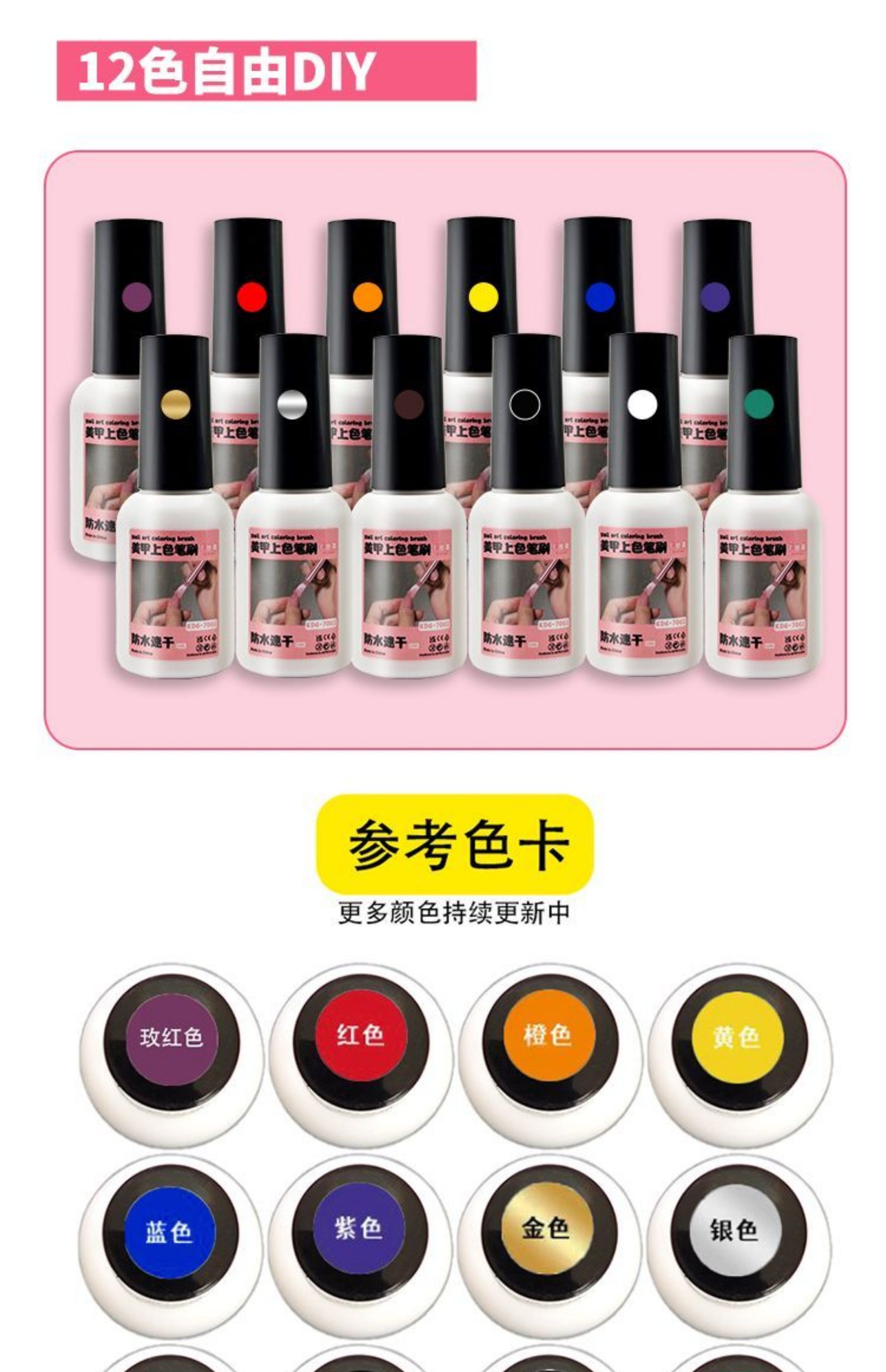 | Color Classification | [Nail Art Graffiti Pen]Regular 12 Color Set,Macaron Color[Nail Art Graffiti Pen]18 Color Set,[Nail Art Graffiti Pen]24 Color Set,[Nail Art Pen]12 Colors, Choose 3 Colors/Contact Customer Service for Remarks,20ML[Mirror Gold]1 Bottle,20ML[Mirror Silver]1 Bottle,[Mirror Effect]Mirror Silver + Mirror Gold, 2 Bottles in Total,20ML[Mirror Gold]3 Bottles,20ML[Mirror Silver]3 Bottles,20ML[Nail Art Brush]Black, 1 Bottle,20ML[Nail Art Brush]White, 1 Bottle,20ML[Nail Art Brush]Red, 1 Bottle,20ML[Nail Art Brush]Gold, Single Bottle,20ML[Nail Art Brush]Silver, 1 Bottle,20ML[Nail Art Brush]1 Bottle of Rose Red,20ML[Nail Art Brush]Purple 1 Bottle,20ML[Nail Art Brush]Brown 1 Bottle,20ML[Nail Art Brush]Blue, 1 Bottle,20ML[Nail Art Brush]Orange 1 Bottle,20ML[Nail Art Brush]Green 1 Bottle,20ML[Nail Art Brush]Yellow 1 Bottle,20ML[Nail Art Brush]3 Colors of Your Choice, 3 Bottles in Total,20ML[Nail Art Brush]6 Bottles in Total, 6 Colors of Your Choice,20ML[Nail Art Brush]12 Color Set,Special Protective Paint 20ml*1 Bottle |