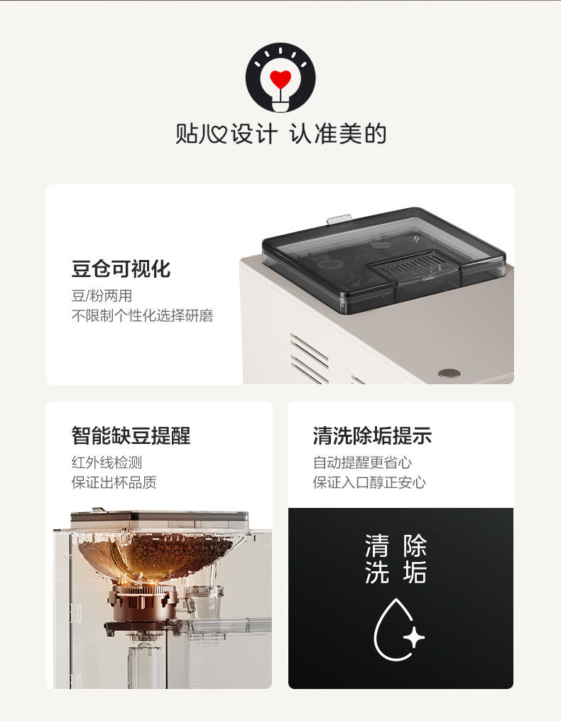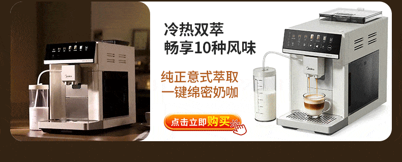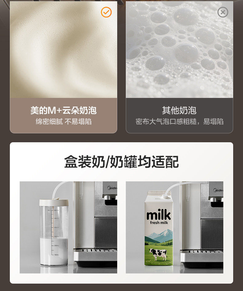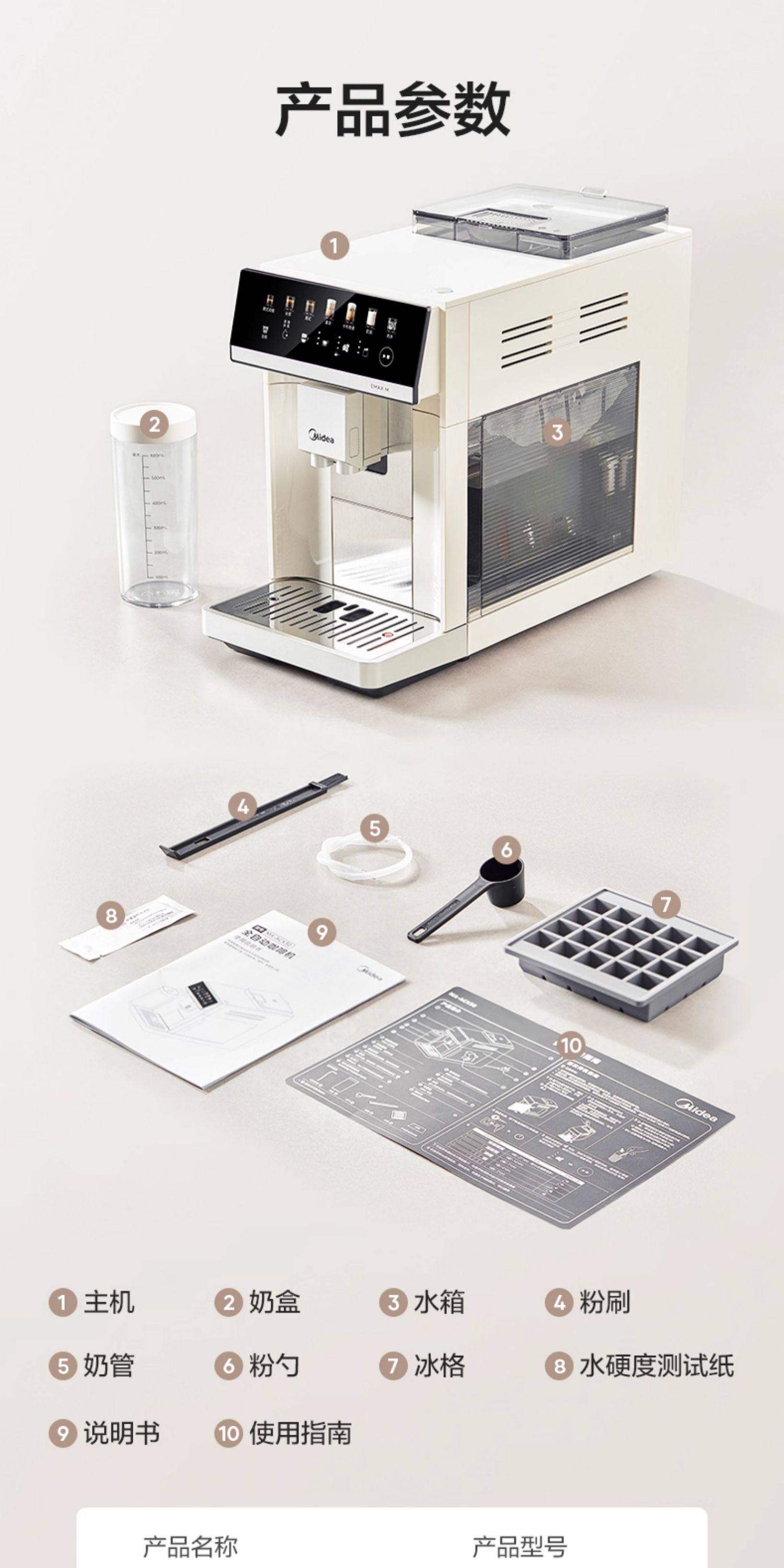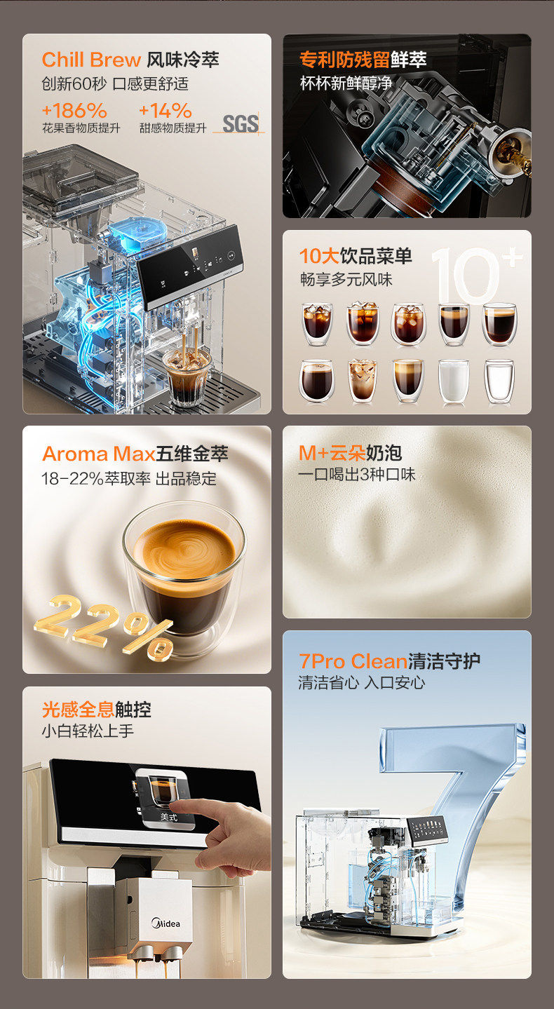 Midea Fully Automatic Coffee Machine with Dual Temperature Extraction, One-Touch Milk Frothing, Home-Use Freshly Ground Espresso Machine with Integrated Grinder and Self-Cleaning Function