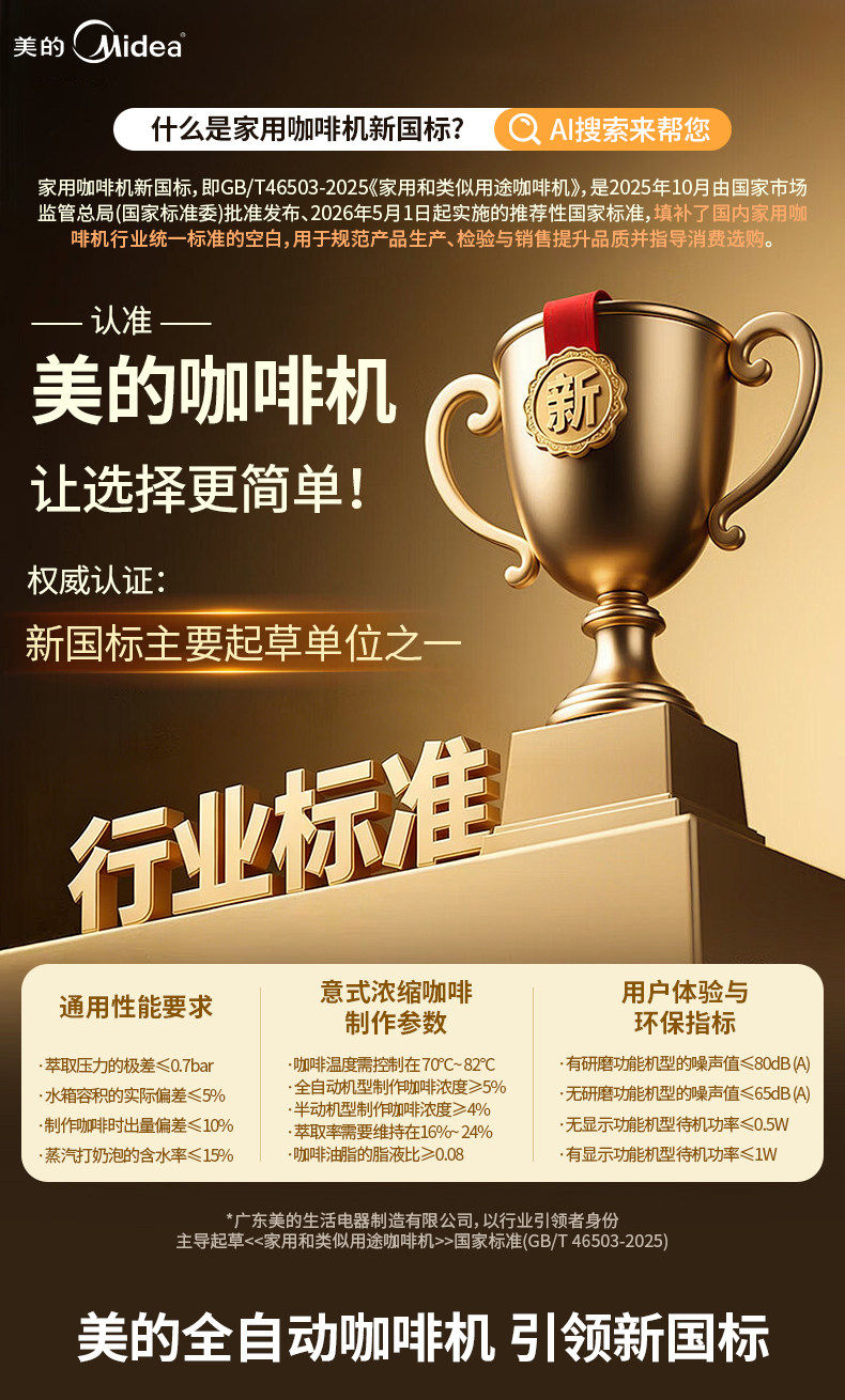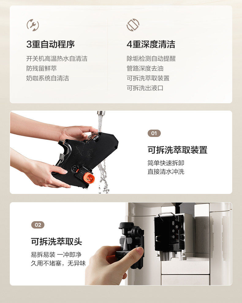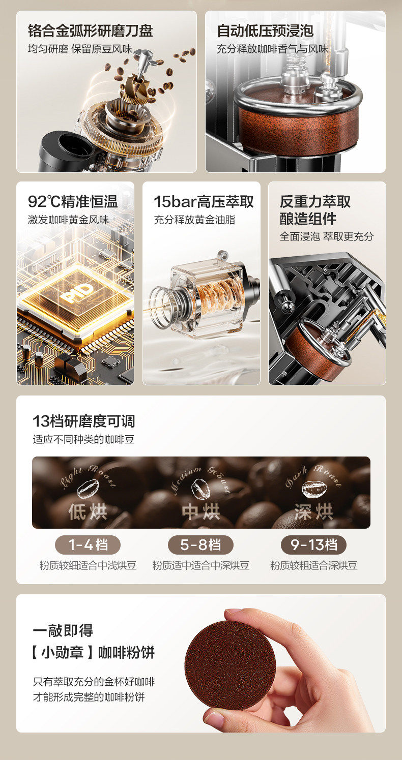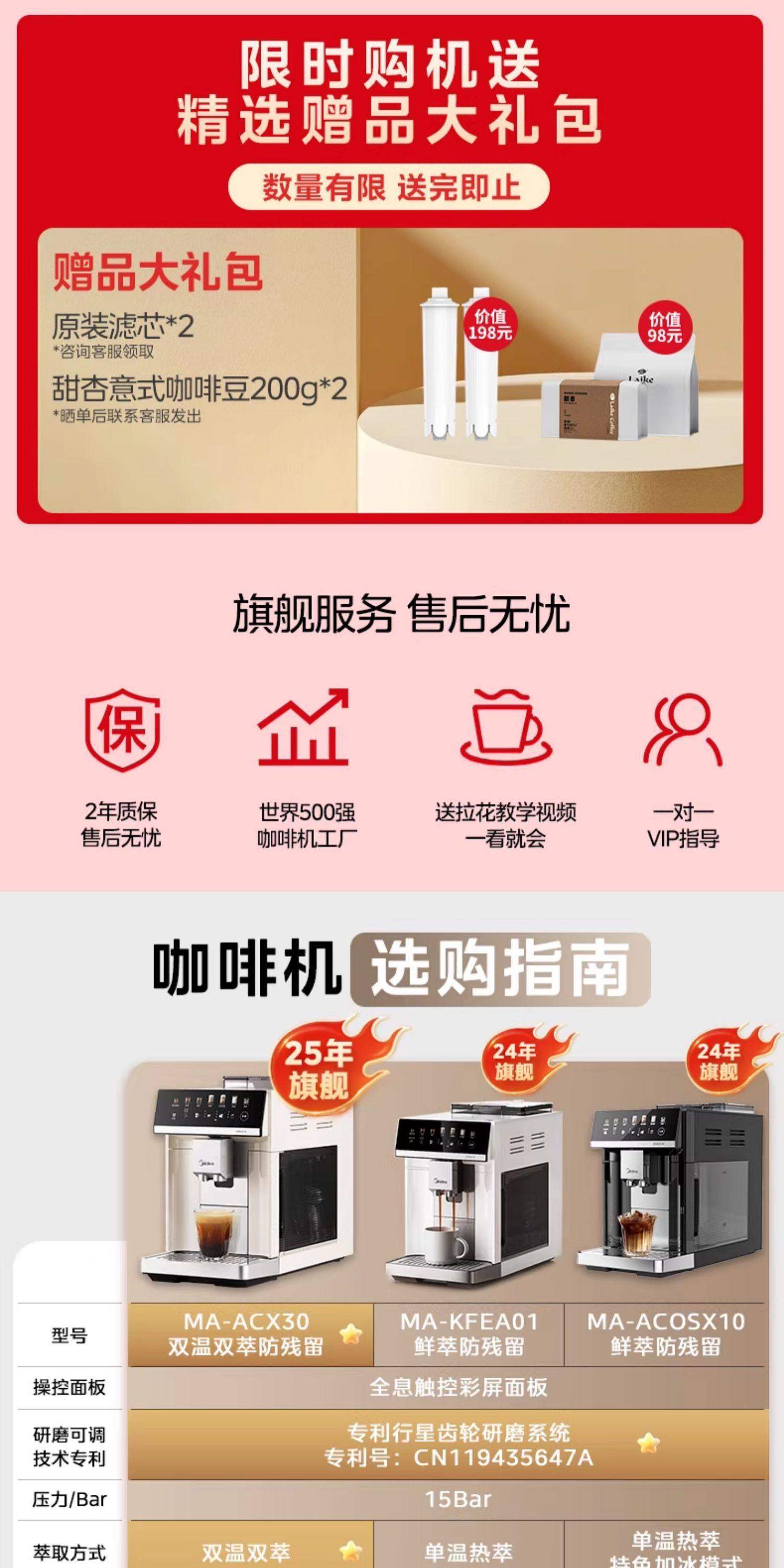 Midea Fully Automatic Coffee Machine with Dual Temperature Extraction, One-Touch Milk Frothing, Home-Use Freshly Ground Espresso Machine with Integrated Grinder and Self-Cleaning Function