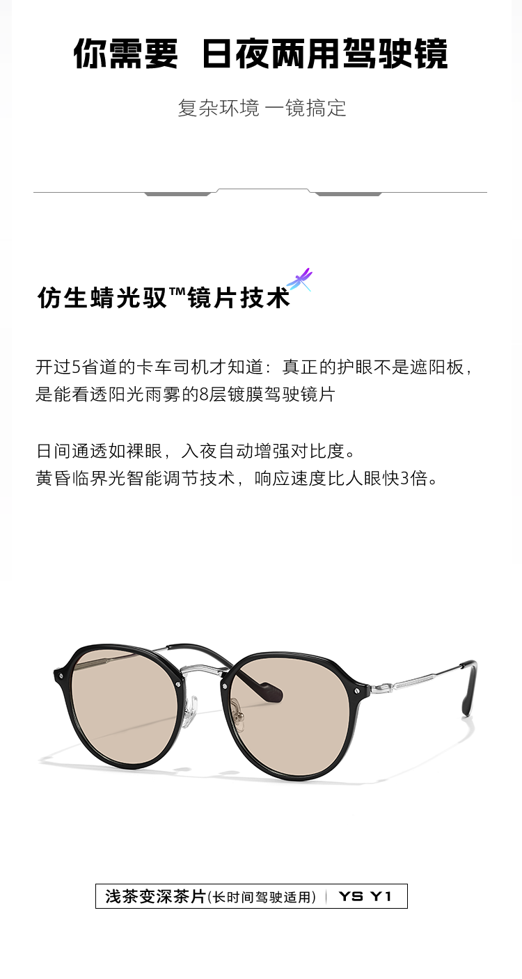 Yanjie Driving Mirror Women's 2025 New Non-Polarized Hud Color-Changing Sunglasses for Driving Day and Night Dual-Use Sunglasses