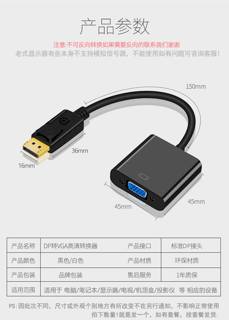 | Color Classification | Dp to Vga1080[Black],Dp to Vga1080[White] |
