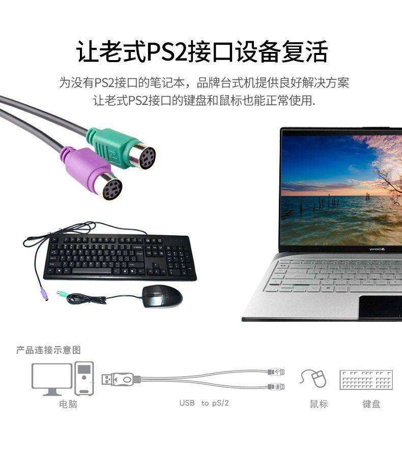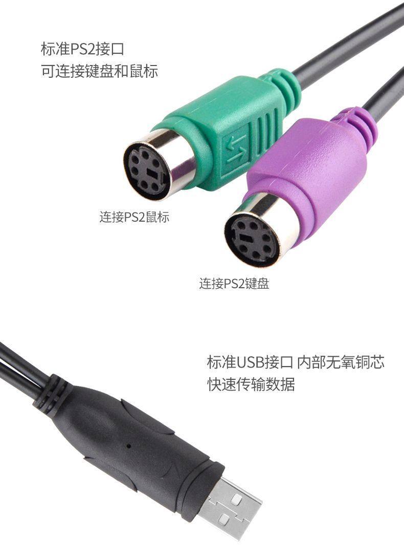 Ps2 to USB Adapter Cable Mouse Keyboard Computer Round Port Round Head Ps/2 Female to USB Male Interface Converter