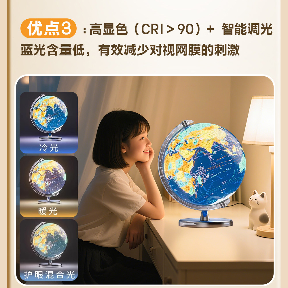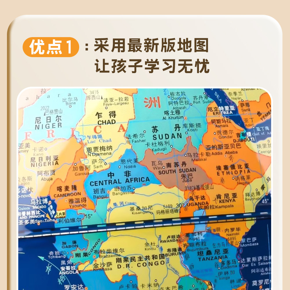 Globe Authentic for Students, Specifically for Junior High School Students, 3D Stereo Floating Concave-Convex Ar Intelligent World Map, Large and Extra-Large Size, Children's Enlightenment, Boys' Birthday Gift, 2025 New Edition
