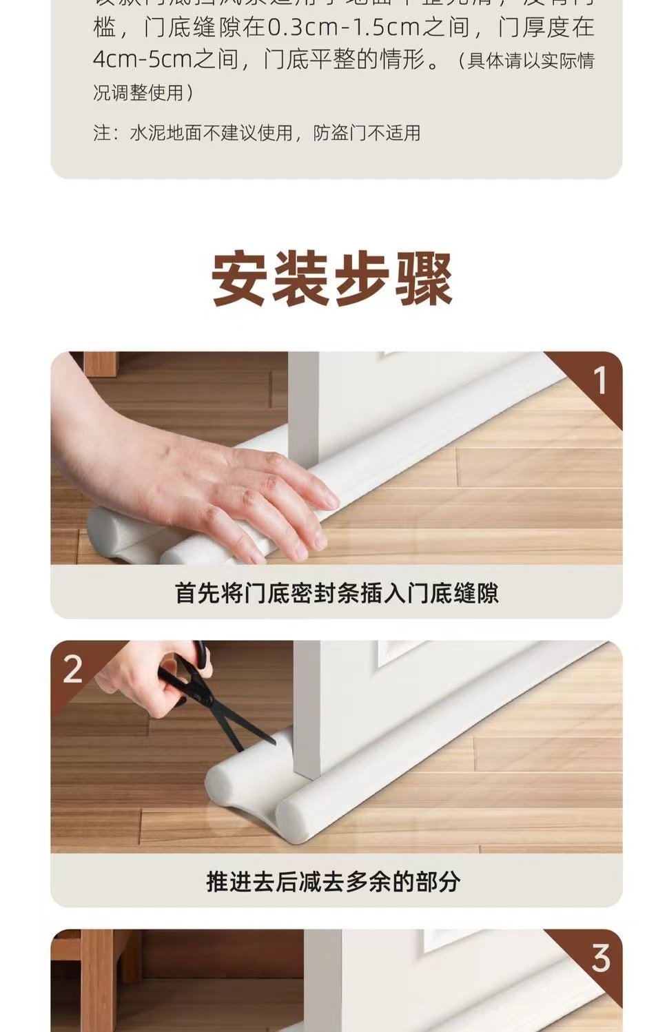 | Color Classification | Windproof and Soundproof[Twilight Gray]1 Strip + 1 Pack of Air Conditioning Hole Blocking Clay,Windproof and Soundproof[Twilight Gray]2 Pieces + 1 Pack of Air Conditioning Hole Blocking Clay,Windproof and Soundproof[Twilight Gray]3 Pieces + 1 Pack of Air Conditioning Hole Blocking Clay,Windproof and Soundproof[Pearl White]1 Strip + 1 Pack of Air Conditioning Hole Blocking Clay,Windproof and Soundproof[Pearl White]2 Pieces + 1 Pack of Air Conditioning Hole Blocking Clay,Windproof and Soundproof[Pearl White]3 Pieces + 1 Pack of Air Conditioning Hole Blocking Clay,Windproof and Soundproof[Mocha Brown]1 Strip + 1 Pack of Air Conditioning Hole Blocking Clay,Windproof and Soundproof[Mocha Brown]2 Pieces + 1 Pack of Air Conditioning Hole Blocking Clay,Windproof and Soundproof[Mocha Brown]3 Pieces + 1 Pack of Air Conditioning Hole Blocking Clay,Special for Wooden Floors[Light Gray]1 Piece (Length 90cm),Special for Wooden Floors[Light Gray]2 Pieces (Length 90cm),Special for Wooden Floors[Light Gray]3 Pieces (Length 90cm),Special for Wooden Floors[Cream White]1 Piece (Length 90cm),Special for Wooden Floors[Cream White]2 Pieces (Length 90cm),Special for Wooden Floors[Cream White]3 Pieces (Length 90cm),Special for Wooden Floors[Light Brown]1 Piece (Length 90cm),Special for Wooden Floors[Light Brown]2 Pieces (Length 90cm),Special for Wooden Floors[Light Brown]3 Pieces (Length 90cm) |