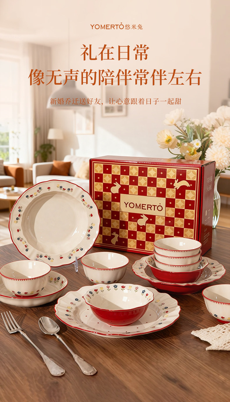 Dishes and Bowls Set, High-Quality Ceramic for Home Use, Wedding Gift, Souvenir, Tableware Set, 2026 New Model, Housewarming Gift