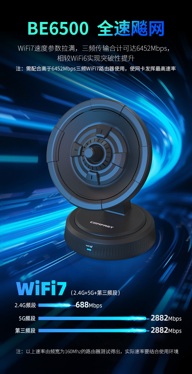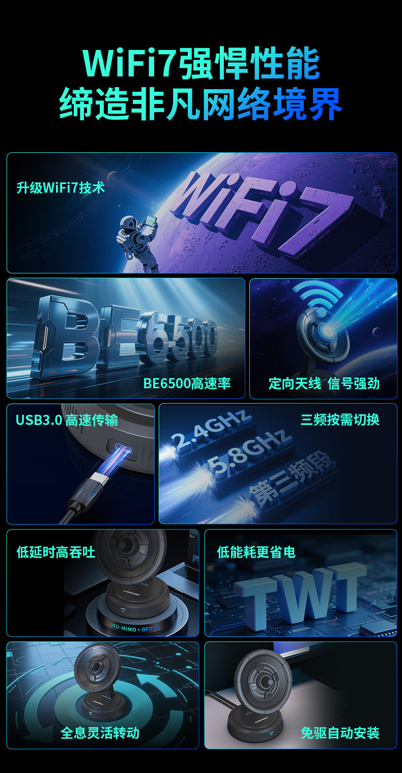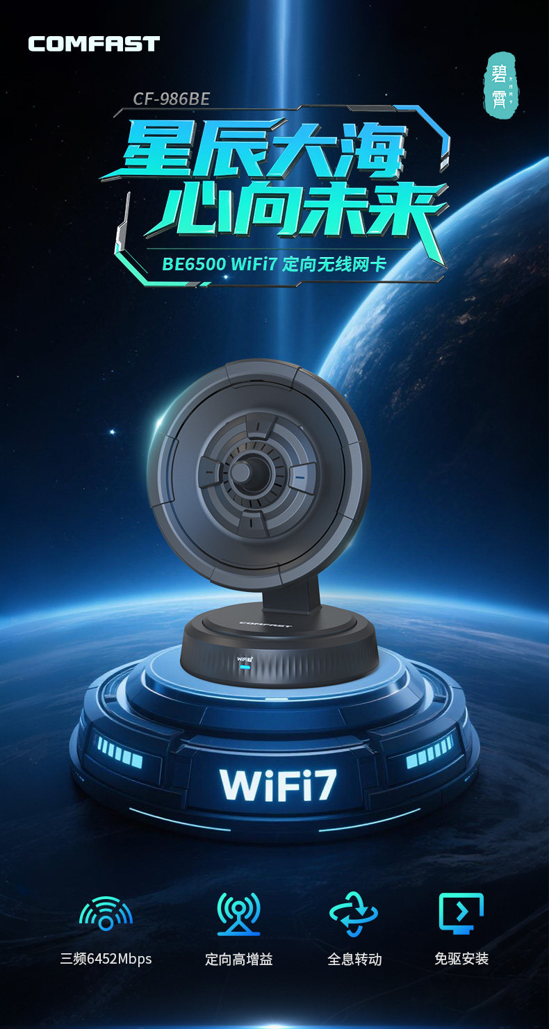 Comfast Wifi7 Directional Network Card 6500m Driver-Free USB Network Card Gigabit Tri-Band 5g Desktop Computer Laptop Wifi Receiver Transmitter High-Power Gaming Network Card Cf-986Be