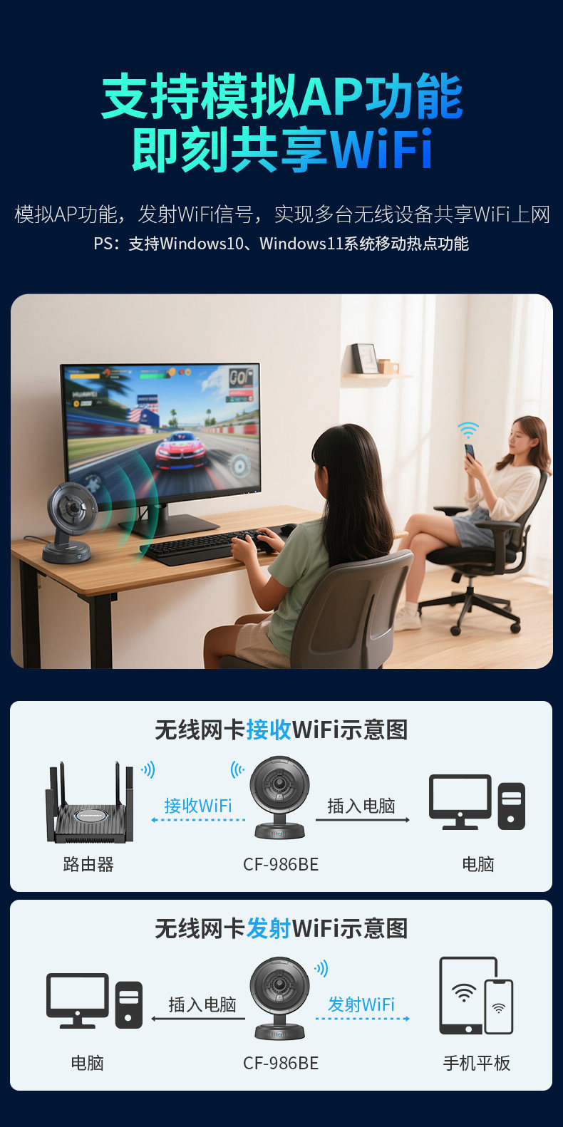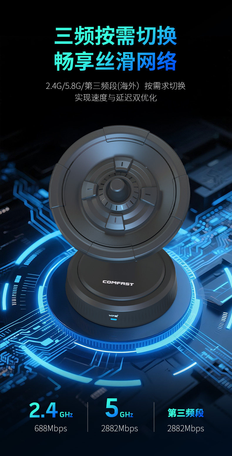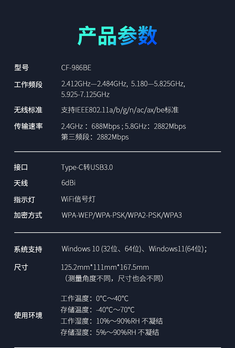 Comfast Wifi7 Directional Network Card 6500m Driver-Free USB Network Card Gigabit Tri-Band 5g Desktop Computer Laptop Wifi Receiver Transmitter High-Power Gaming Network Card Cf-986Be