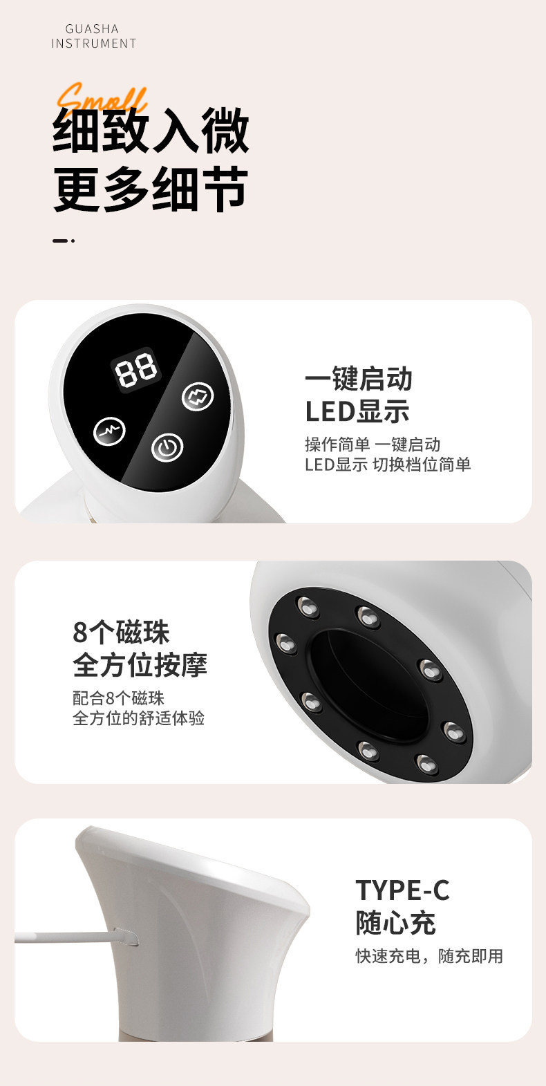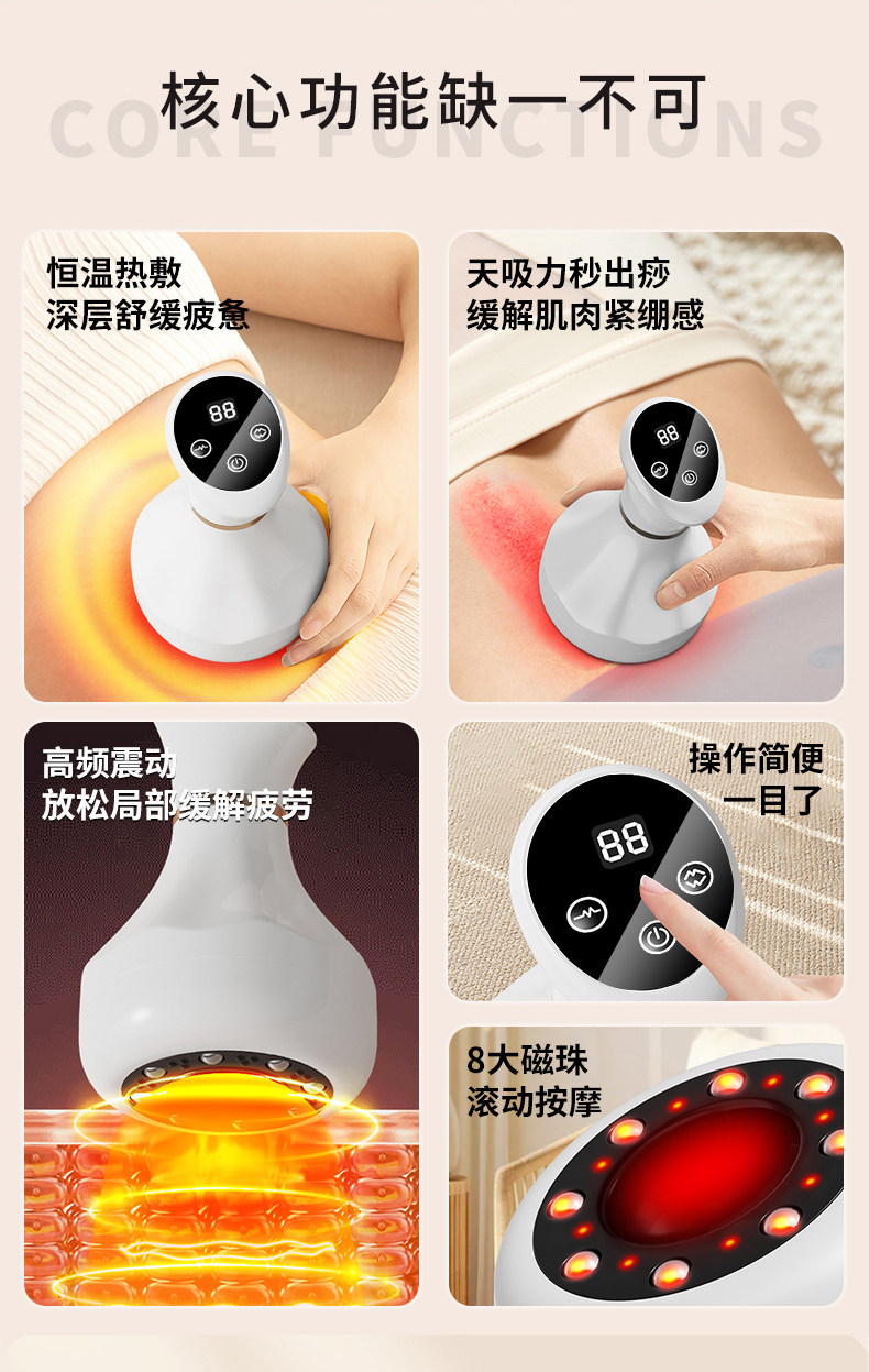 | Color Classification | [Luxury Charging Model]2 Bottles of Essential Oil + 8 Magnetic Heads + 9 Levels of Intensity + 9 Levels of Red Light Hot Compress Sterilization + High-Definition Digital Display,[Fully Equipped with Charging Model]3 Bottles of Essential Oil + 8 Magnetic Heads + 9 Levels of Intensity + 9 Levels of Red Light Hot Compress Sterilization + High-Definition Digital Display + Skin Rejuvenation,[Top-Of-The-Line Charging Model]5 Bottles of Essential Oil + 5-Year Warranty + 8 Magnetic Heads + Blue Light Skin Rejuvenation + Meridian Dredging + 9 Levels of Intensity + 9 Levels of Red Light Hot Compress Sterilization + High-Definition Digital Display,[Enjoy the Pressure Relief Model]2 Bottles of Essential Oil + 2-Year Warranty + 9 Levels of Intensity + 9 Levels of Red Light Hot Compress Sterilization + High-Definition Digital Display + Skin Rejuvenation + Meridian Dredging,[Fully Equipped Pressure Relief Model]5 Bottles of Essential Oil + 5-Year Warranty + Centrifugal Negative Pressure + Hot Compress to Warm the Abdomen + Painless Cupping + Meridian Dredging + 9 Levels of Intensity + 9 Levels of Red Light Hot Compress Sterilization + High-Definition Digital Display + Skin Rejuvenation + Meridian Dredging |
