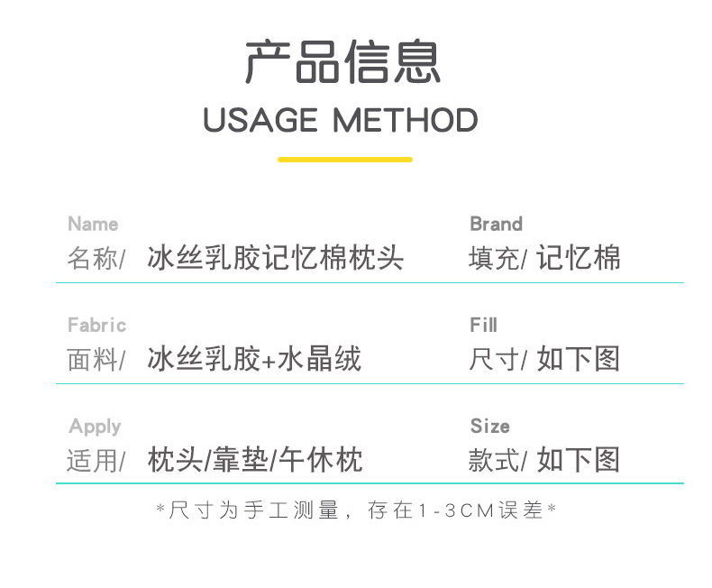 | Color Classification | Husky[Cool Ice Bean Pillowcase + Memory Foam Pillow Core],PANDA[Cool Ice Bean Pillowcase + Memory Foam Pillow Core],Pink Rabbit[Cool Ice Bean Pillowcase + Memory Foam Pillow Core],Dinosaur[Cool Ice Bean Pillowcase + Memory Foam Pillow Core],[Solid Color Ice Silk Fabric + Memory Foam Pillow Core]Dark Gray,[Solid Color Ice Silk Fabric + Memory Foam Pillow Core]Light Gray,[Solid Color Ice Silk Fabric + Memory Foam Pillow Core]Green,[Solid Color Ice Silk Fabric + Memory Foam Pillow Core]Pink,[Solid Color Ice Silk Fabric + Memory Foam Pillow Core]Light Blue,[Solid Color Ice Silk Fabric + Memory Foam Pillow Core]Purple,[Cool Ice Silk Latex Fabric + Memory Foam Pillow Core]PANDA,[Cool Ice Silk Latex Fabric + Memory Foam Pillow Core]Pink Rabbit,[Cool Ice Silk Latex Fabric + Memory Foam Pillow Core]Husky,[Cool Ice Silk Latex Fabric + Memory Foam Pillow Core]Dinosaur |
