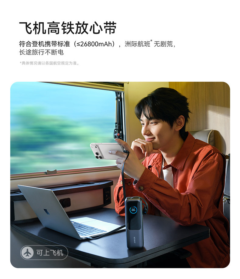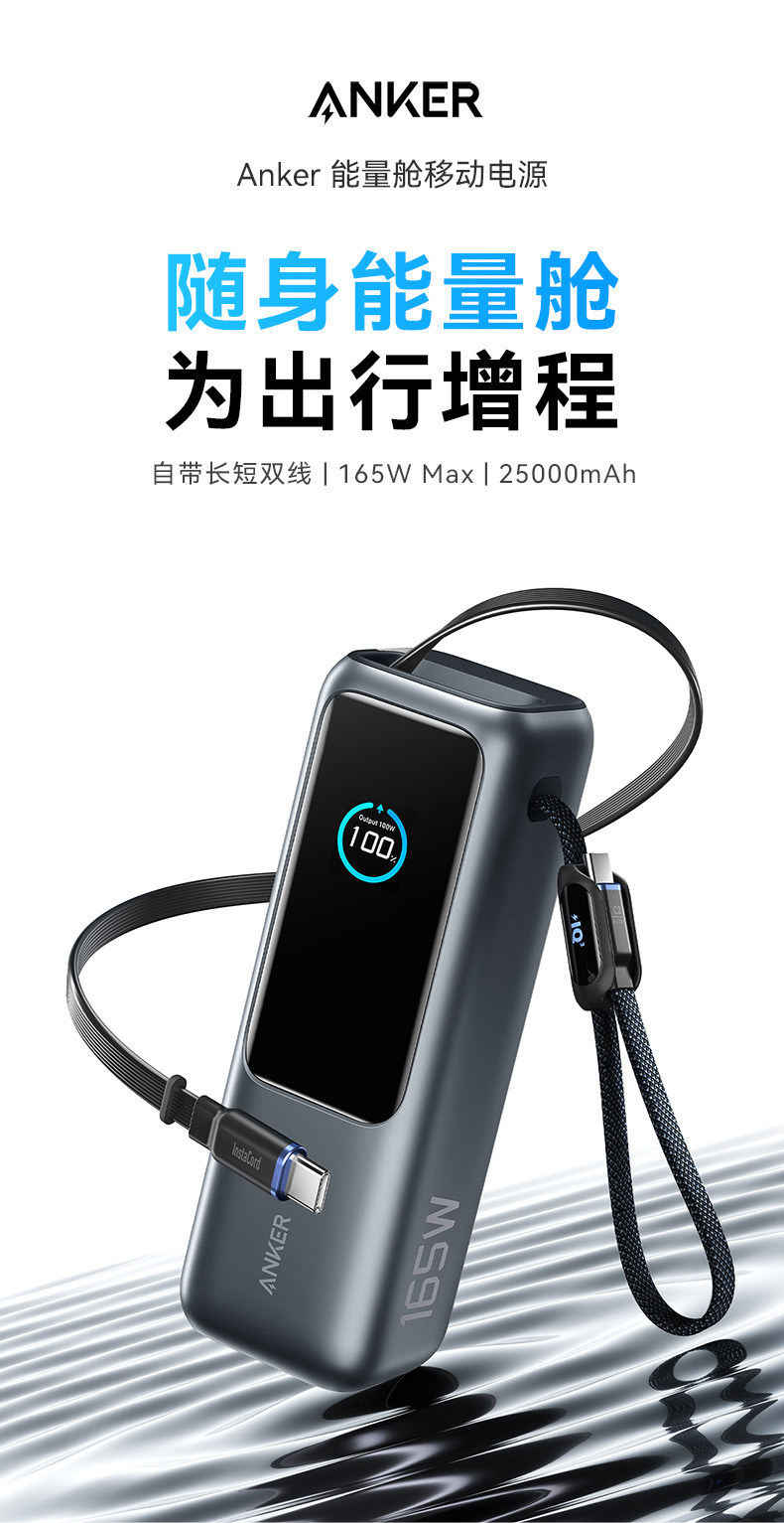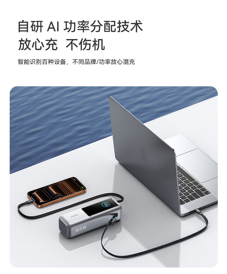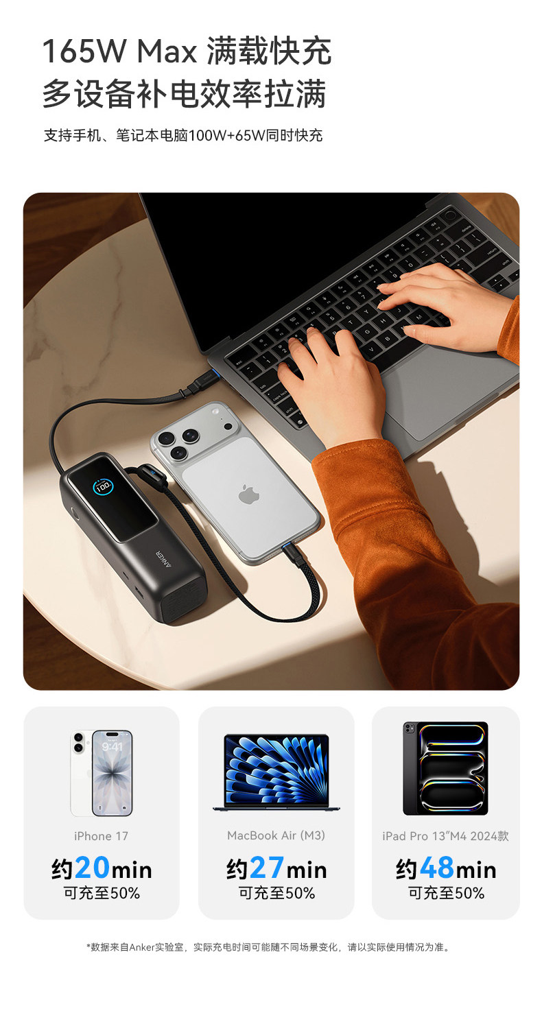 [3C Certified, Suitable for Use on Airplanes] Anker Power Bank with Super Fast Charging, Built-In Retractable Cable, Suitable for iPhone 17, Large Capacity, 165W High Power, 20000Mah, Laptop