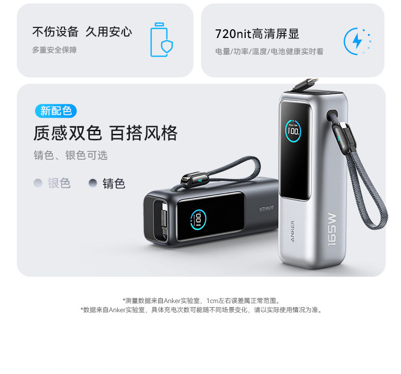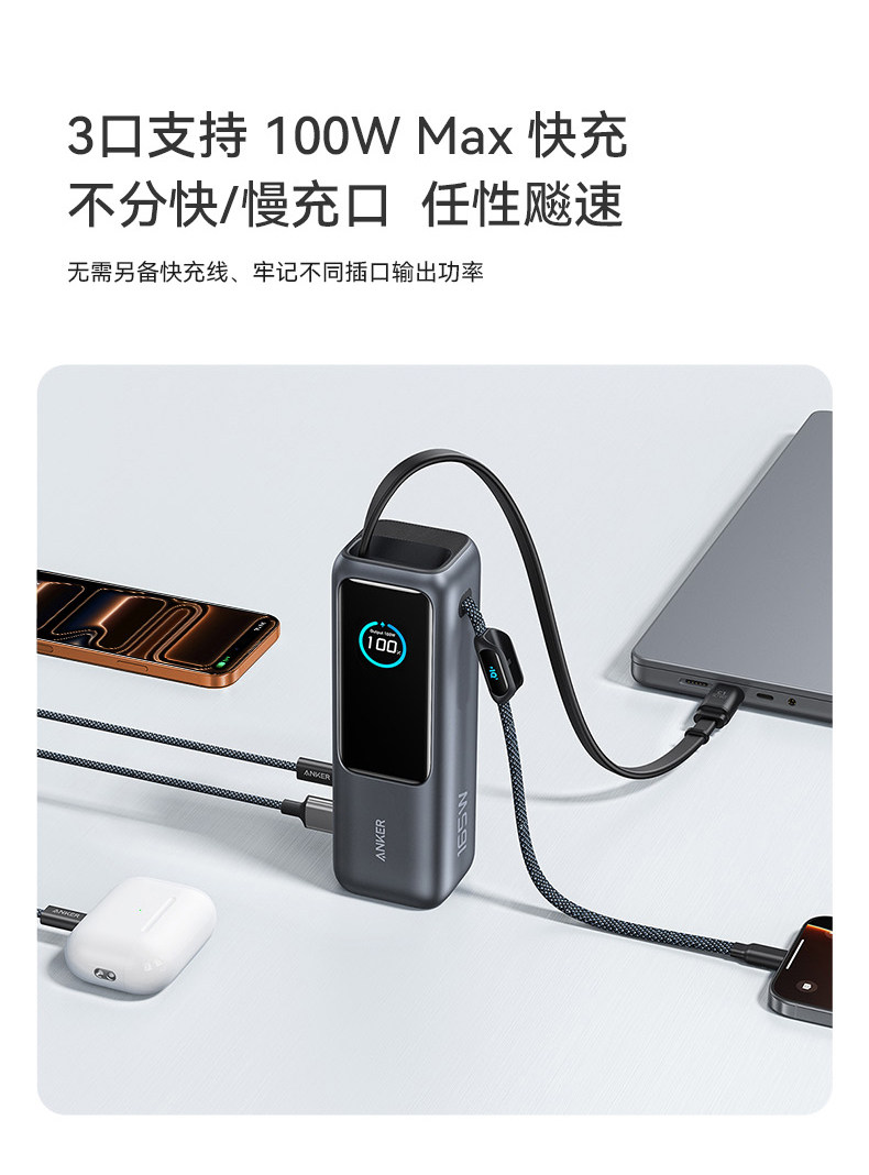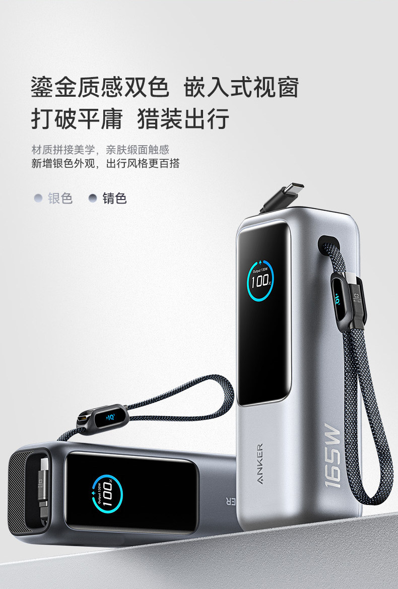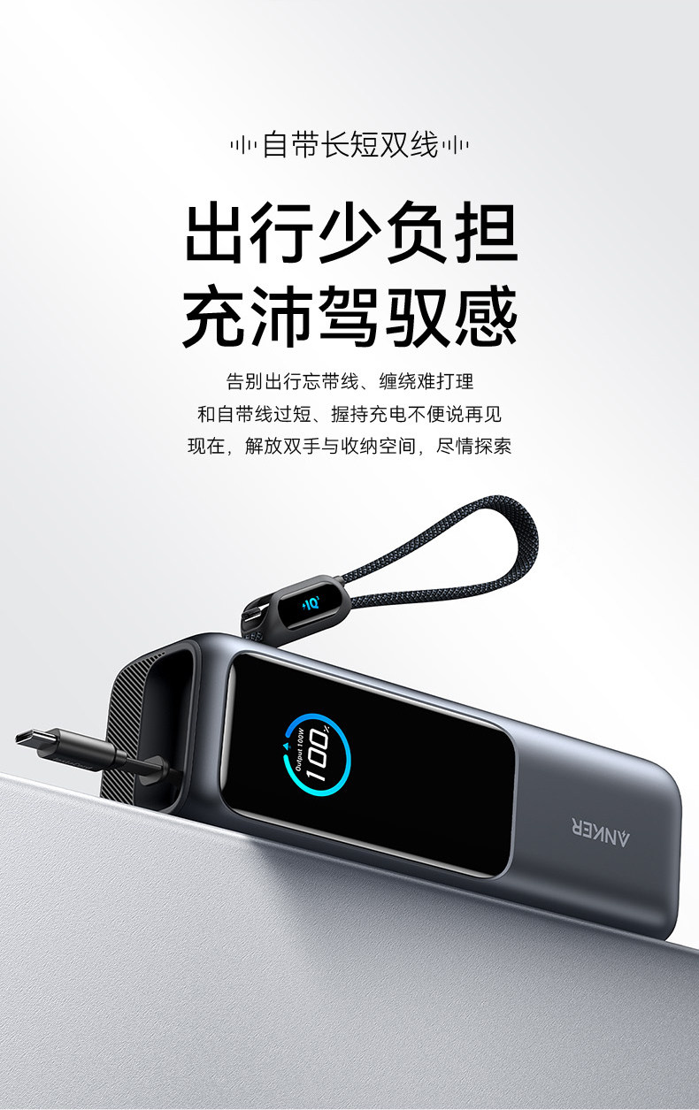 [3C Certified, Suitable for Use on Airplanes] Anker Power Bank with Super Fast Charging, Built-In Retractable Cable, Suitable for iPhone 17, Large Capacity, 165W High Power, 20000Mah, Laptop
