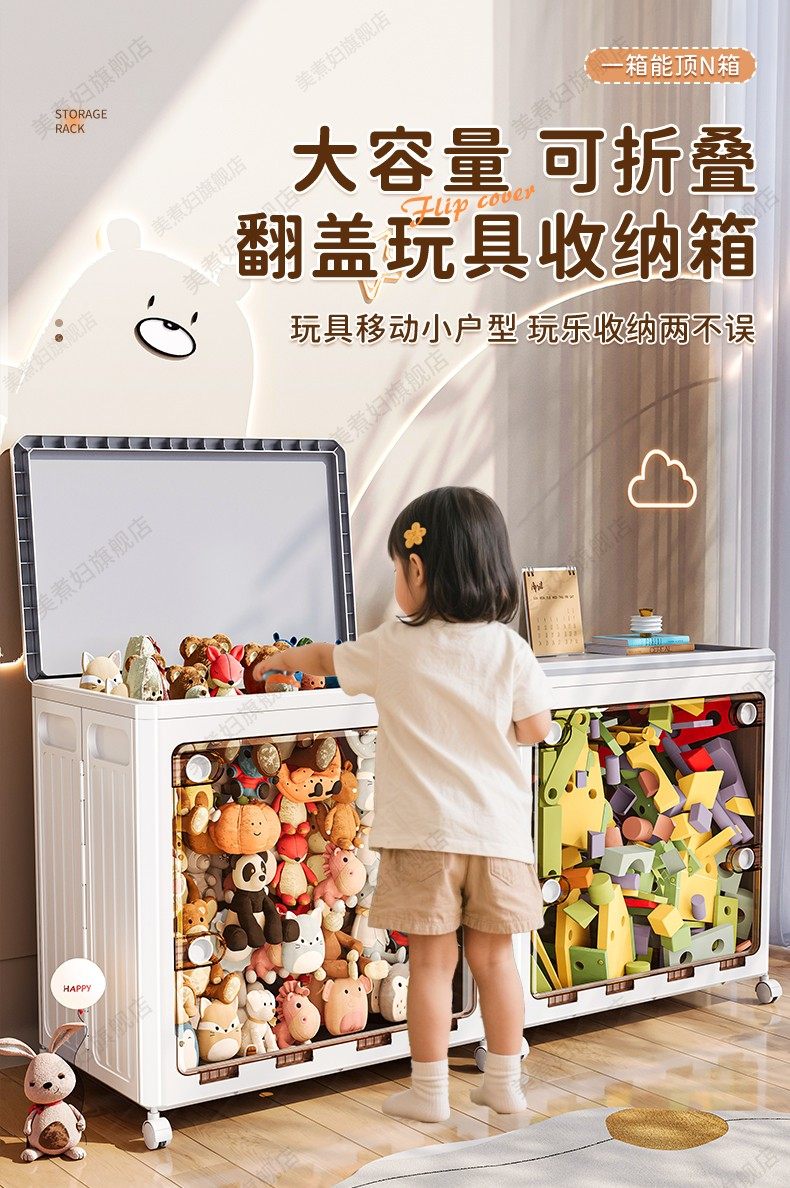 Children's Toy Storage Box, Storage Basket, Flip-Top, Large Capacity, Extra-Large Clothes Organizer, Doll and Snack Storage Bin