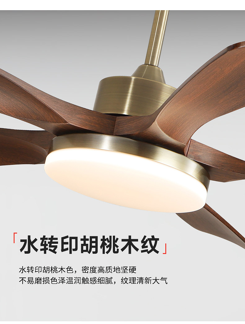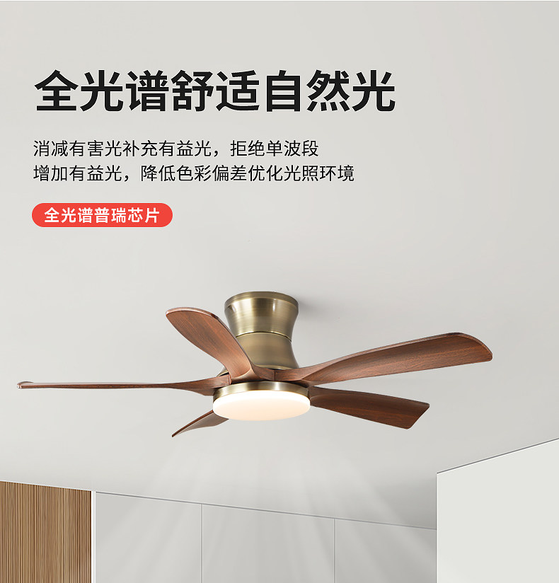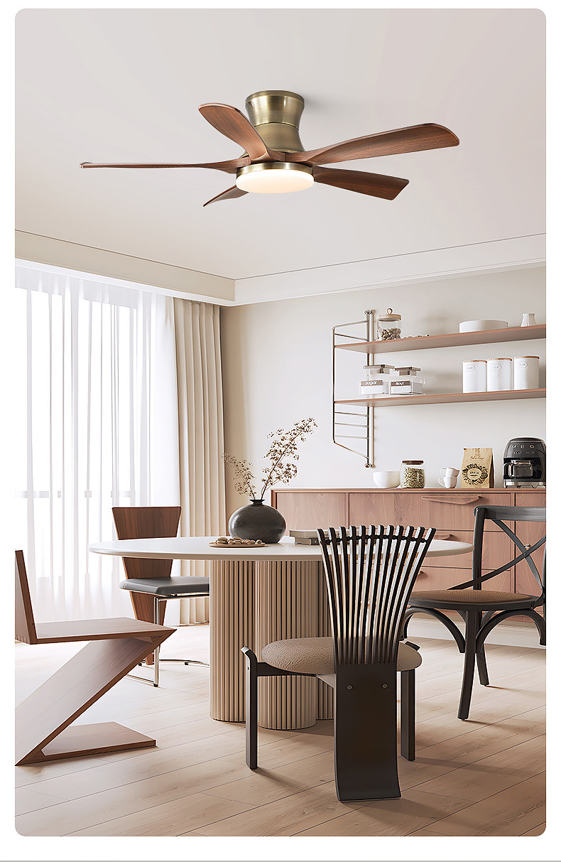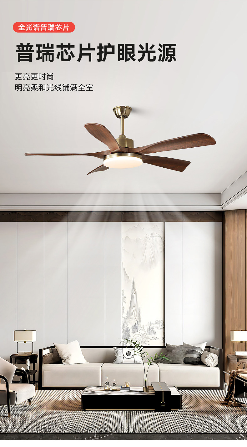 Jiandun Vintage Style Five-Blade Eye-Protection Fan Light, Full-Spectrum Bedroom, Dining Room, Living Room, Song-Style Aesthetic Ceiling Fan Light