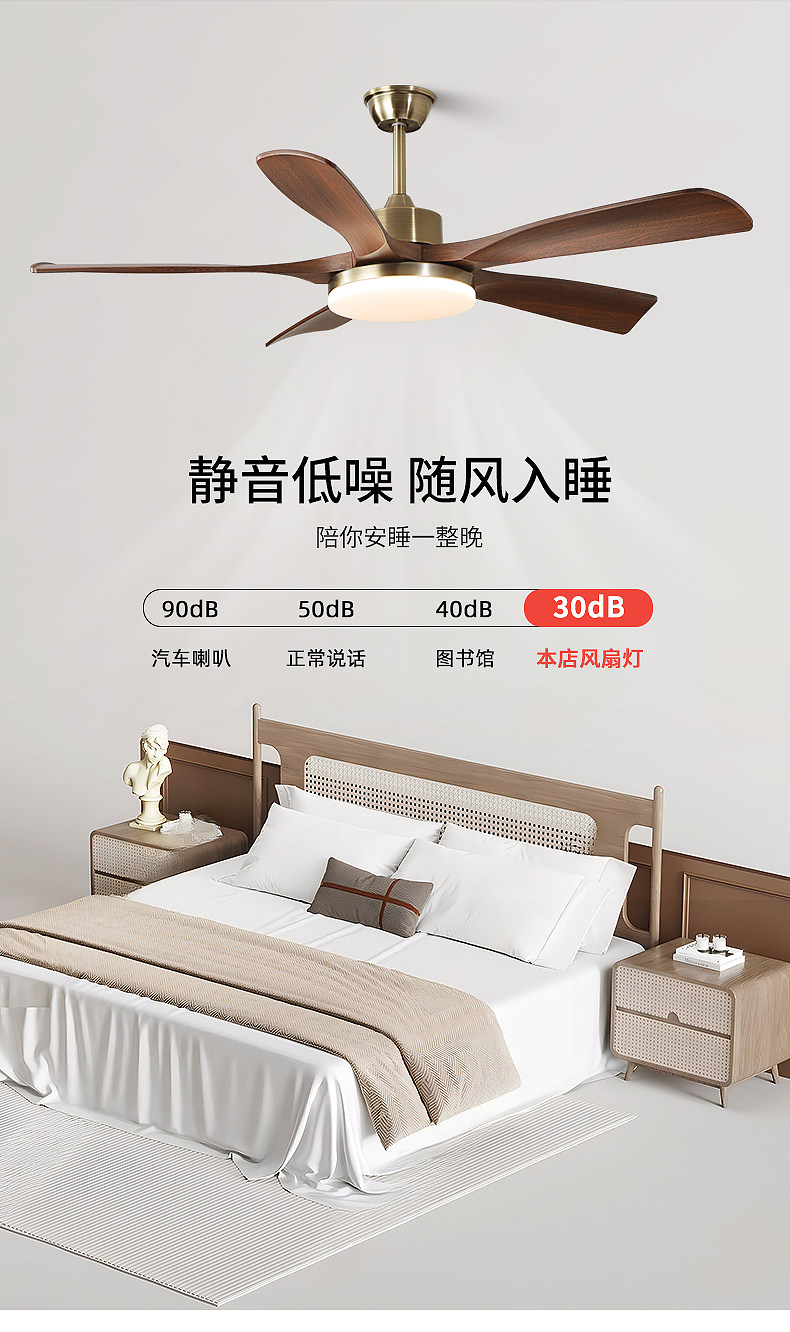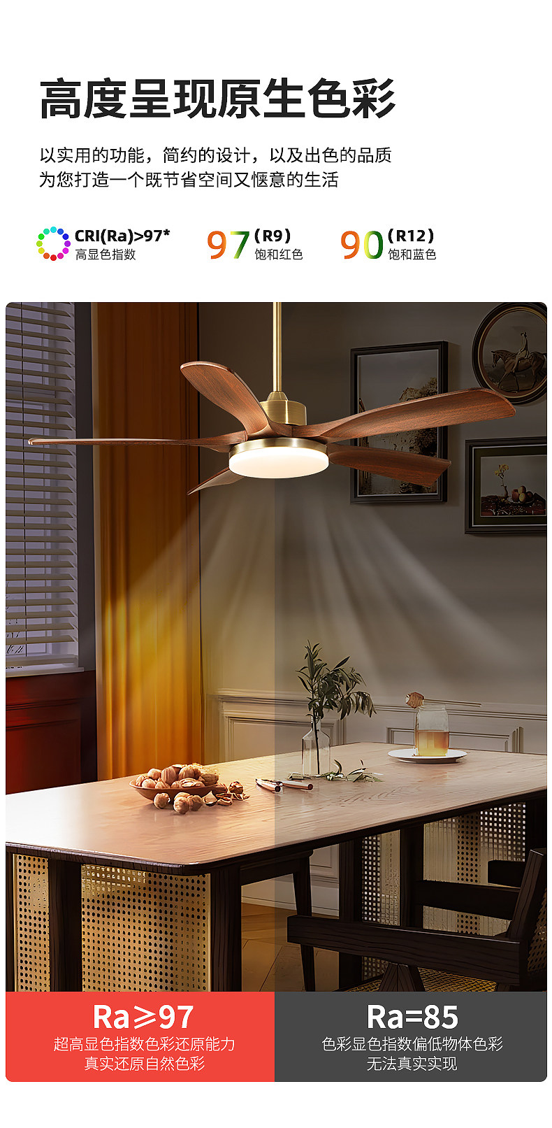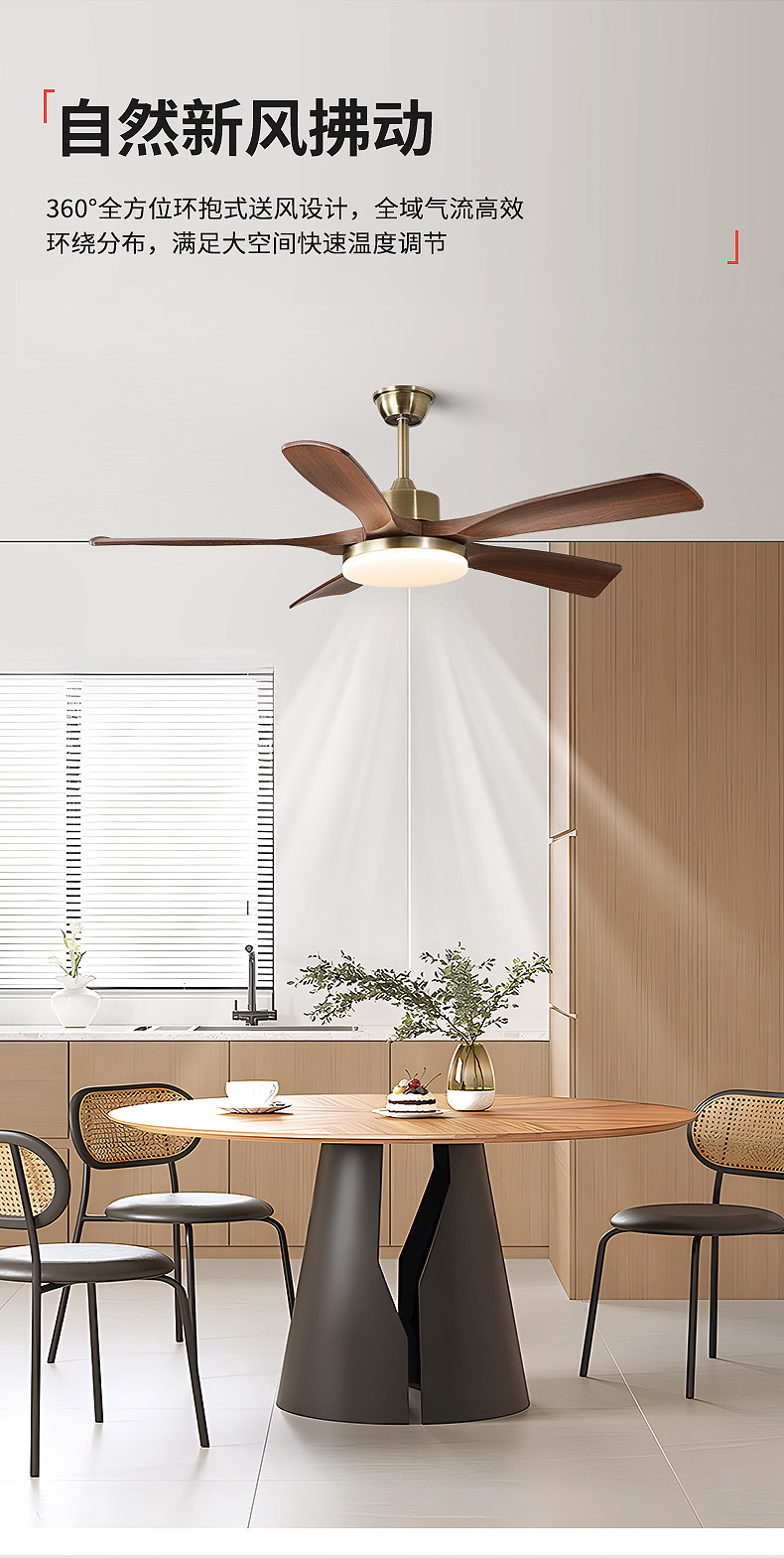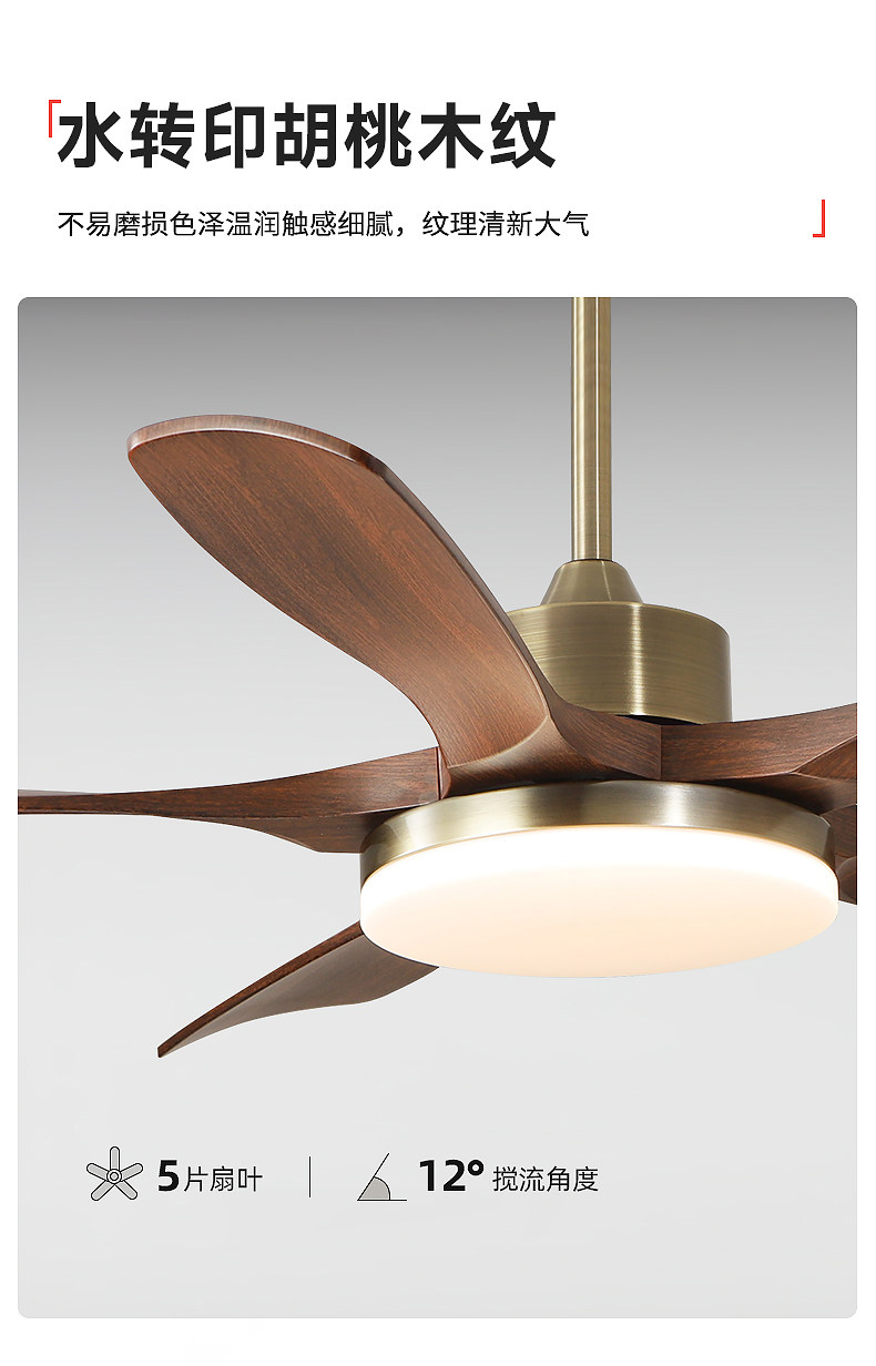 Jiandun Vintage Style Five-Blade Eye-Protection Fan Light, Full-Spectrum Bedroom, Dining Room, Living Room, Song-Style Aesthetic Ceiling Fan Light