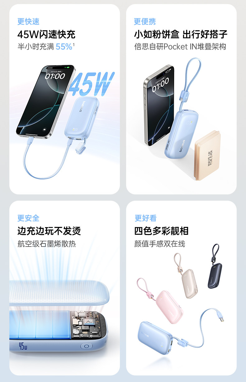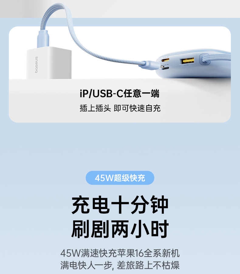| Color Classification | Blue [Separate with Built-In Cable★Apple+Type-C】【22.5W/20W Fast Charging】Applicable to All Apple 6-17 Series + Android Fast Charging,Pink [Separate with Built-In Cable★Apple+Type-C】【22.5W/20W Fast Charging】Applicable to All Apple 6-17 Series + Android Fast Charging,Titanium Color [Separate with Built-In Cable★Apple+Type-C】【22.5W/20W Fast Charging】Applicable to All Apple 6-17 Series + Android Fast Charging,Black [Separate with Built-In Cable★Apple+Type-C】【22.5W/20W Fast Charging】Applicable to All Apple 6-17 Series + Android Fast Charging,[Upgraded 45W Super Flash Charge] Blue [Separate Comes with Cable★Apple+Type-C] Applicable to All Apple 6-17 Series + Android Fast Charging,[Upgraded 45W Super Flash Charge] Pink [Separate Comes with Cable★Apple+Type-C] Applicable to All Apple 6-17 Series + Android Fast Charging,[Upgraded 45W Super Flash Charge] Titanium Color [Separate Comes with Cable★Apple+Type-C] Applicable to All Apple 6-17 Series + Android Fast Charging,[Upgraded 45W Super Flash Charge] Black [Separate Comes with Cable★Apple+Type-C] Applicable to All Apple 6-17 Series + Android Fast Charging |