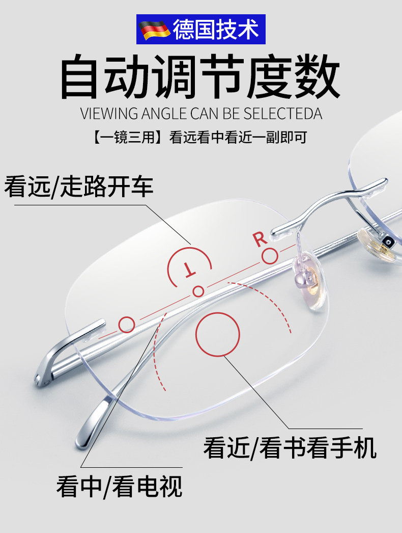 Far and Near Dual-Use Reading Glasses for Women, Anti-Blue Light, Add Automatic Adjustment of Prescription, Two-In-One Myopia and Reading Glasses