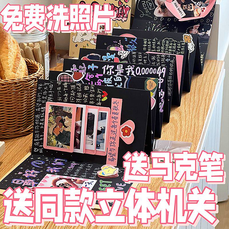 Accordion Pop-Up Book DIY Material Kit Handmade Folding Birthday Gift Interactive Folding Photo Album Memory Book