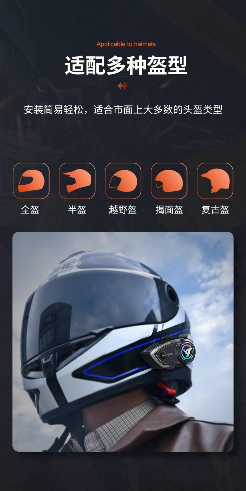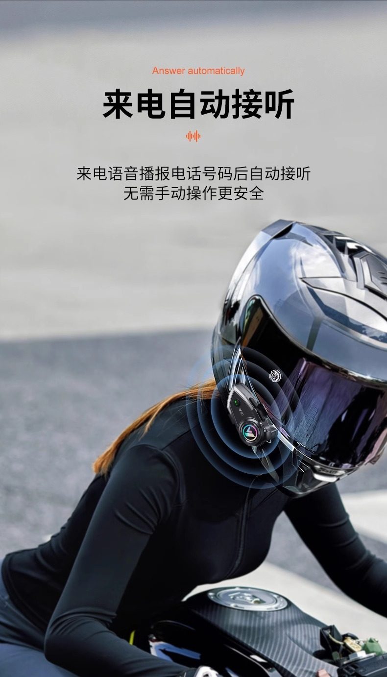 Helmet Bluetooth Headset for Motorcycle Delivery Riders, Full Helmet, Half Helmet, Riding Navigation, Intercom, Noise Reduction, Waterproof
