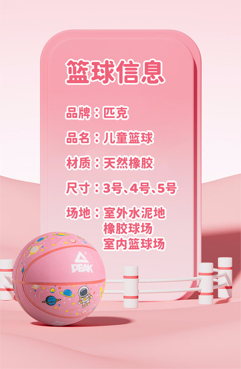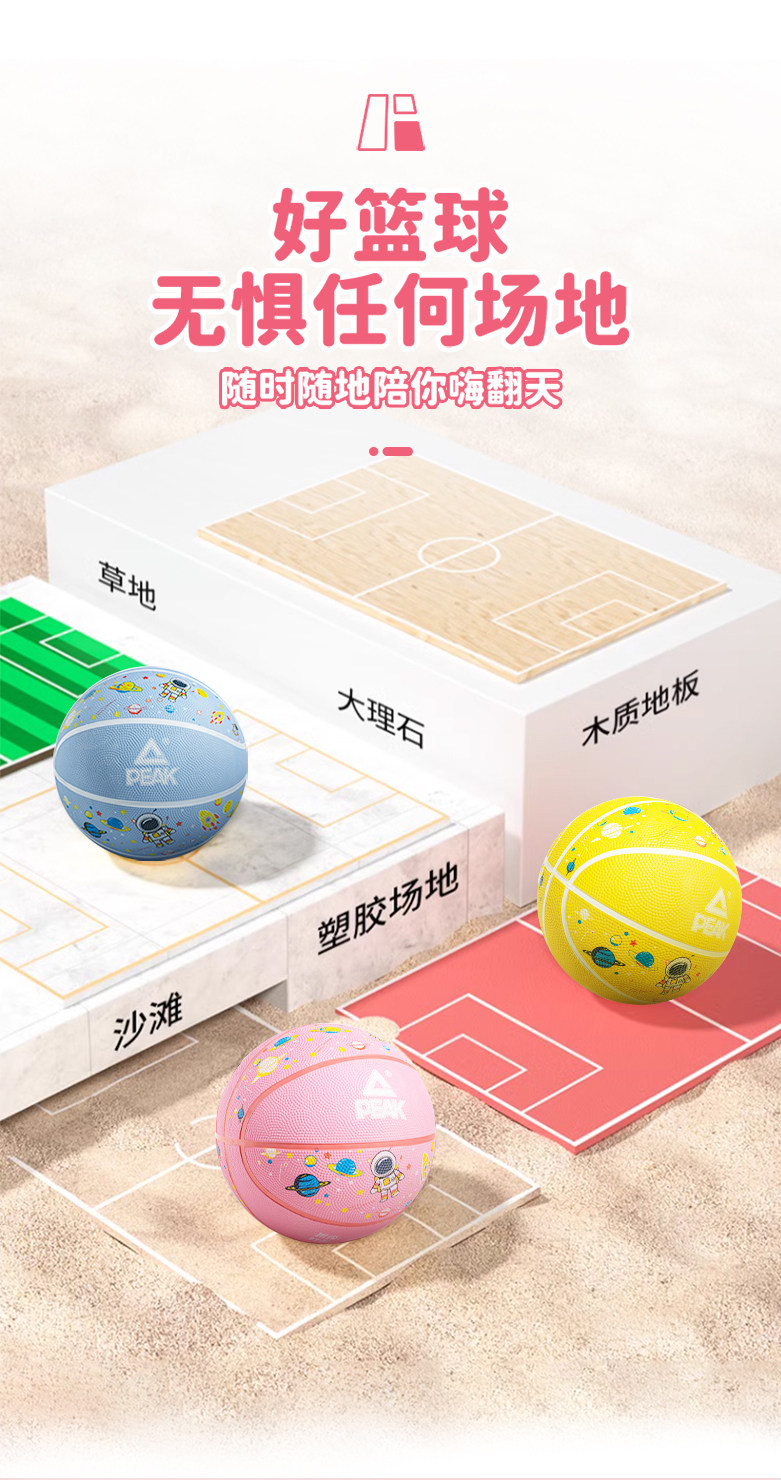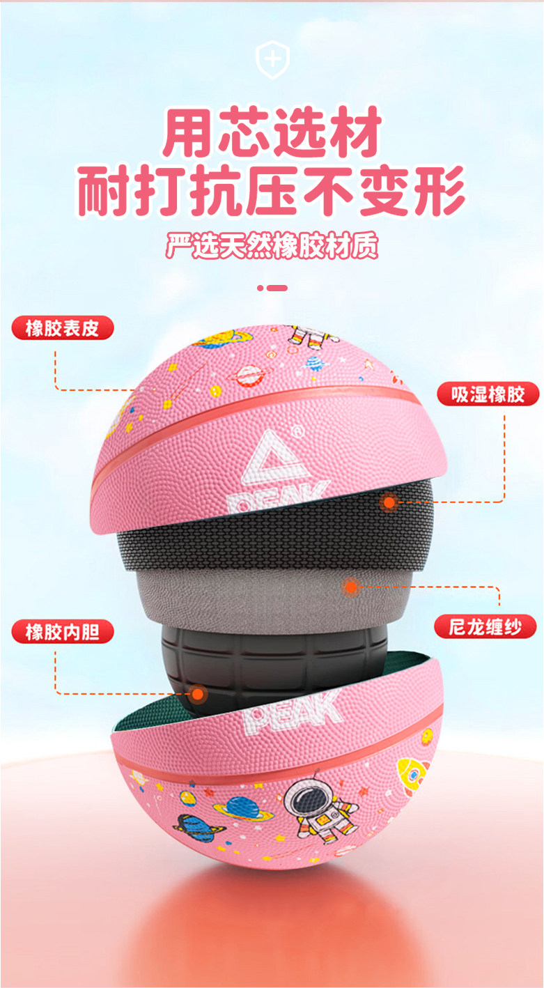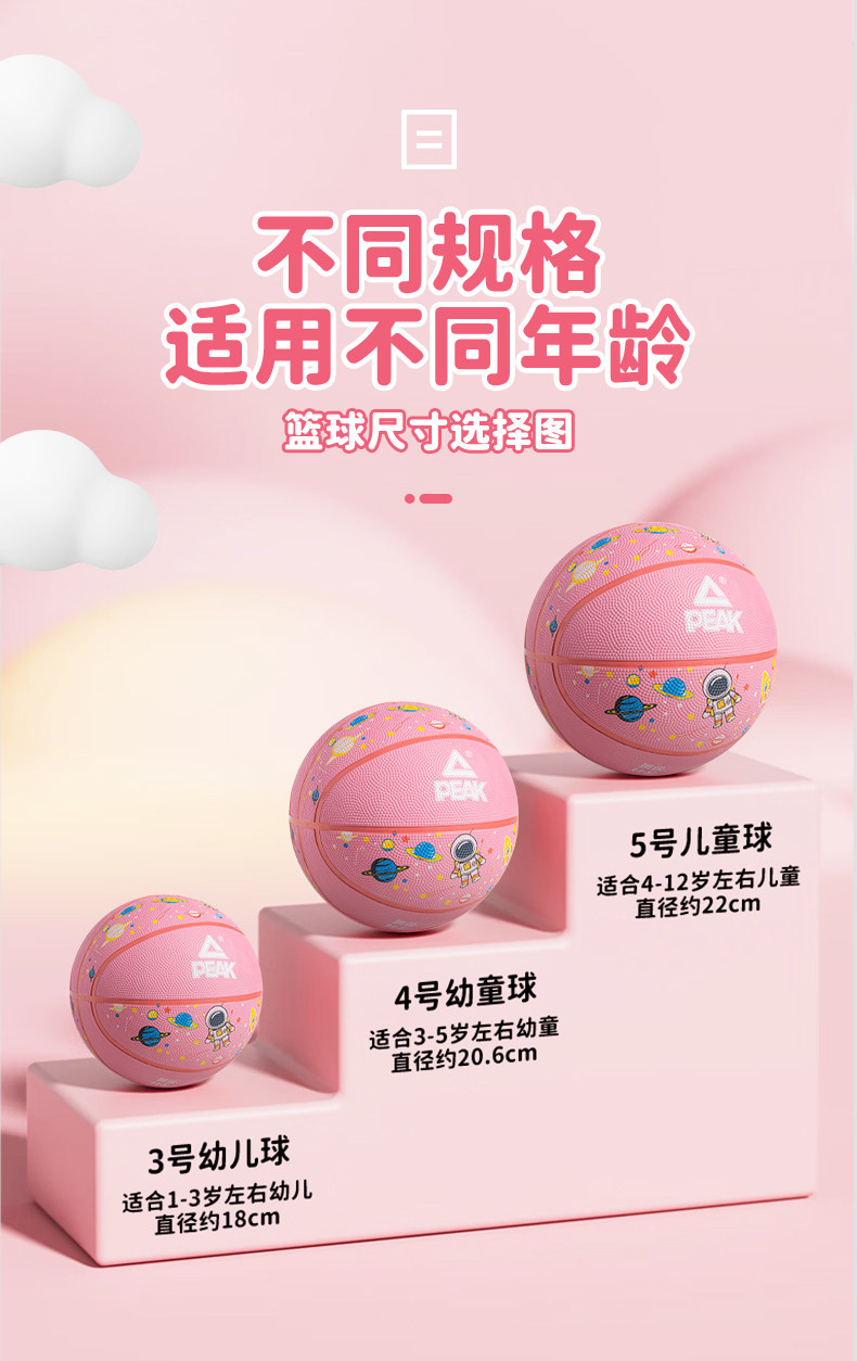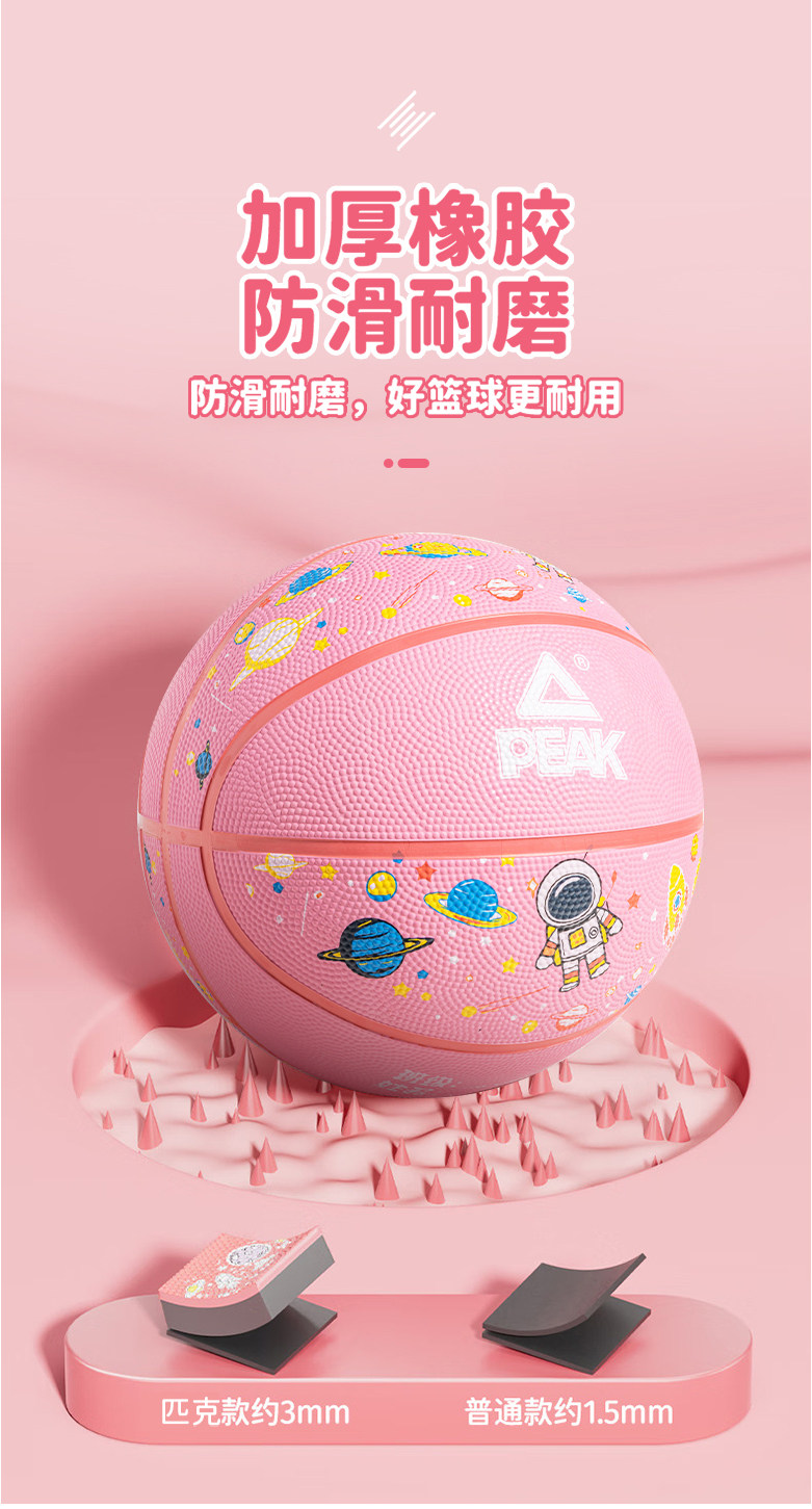 Peak Basketball Official Authentic Children's Basketball for Elementary School Students, Training Size 5, Kindergarten Size 4, Size 3, Durable Leather Basketball