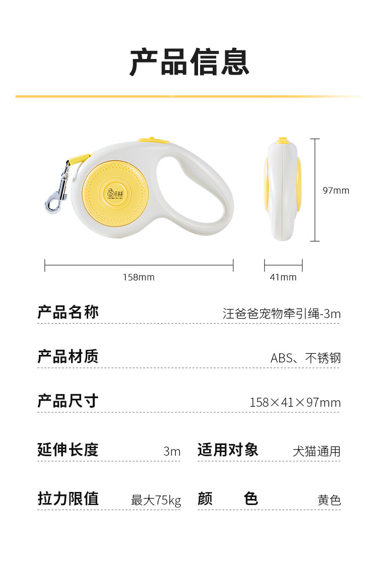 Wang Daddy's Pet Dog Leash, Automatic Retractable Dog Leash, Anti-Shock, Suitable for Bichon Frise, Corgi, and Golden Retriever, Outdoor Essential