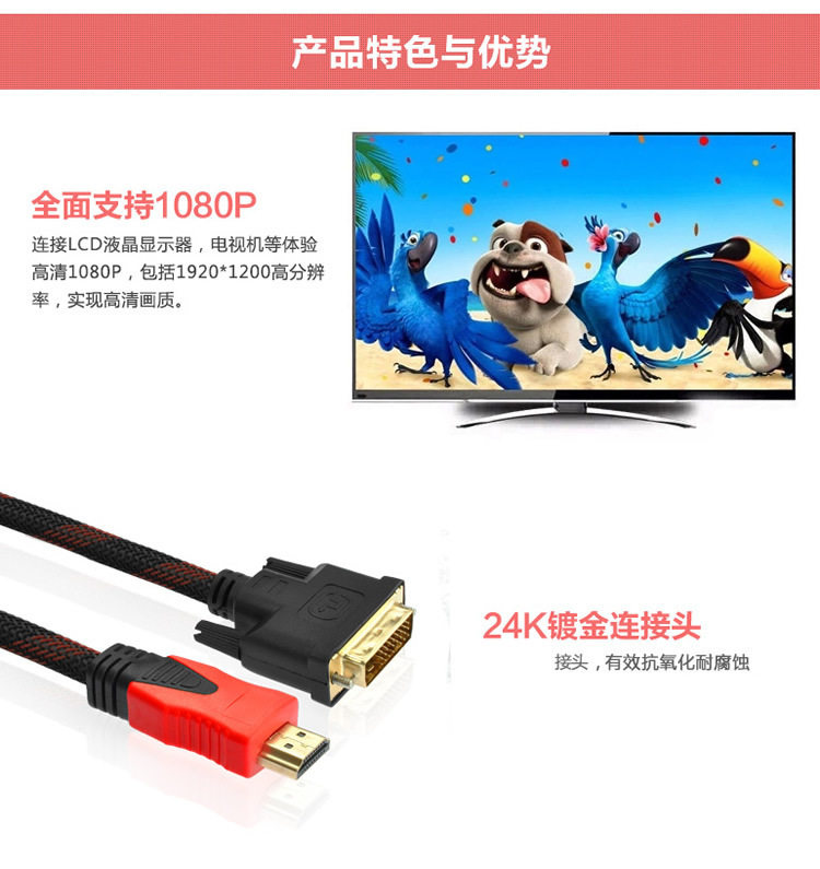 1.5 Meter HDMI to Dvi Cable High-Definition Cable Dvi to HDMI Cable Graphics Card to Display Connection Cable Conversion Cable