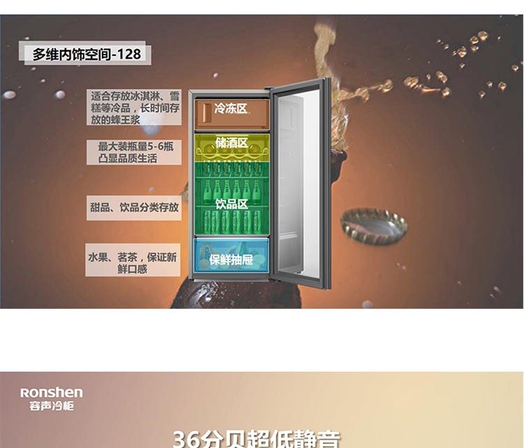 Rongshen/Rongsheng Jc-108Yl/128 Small Freezer Refrigerator Ice Bar Cooler Wine Cabinet