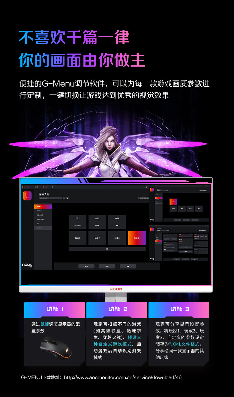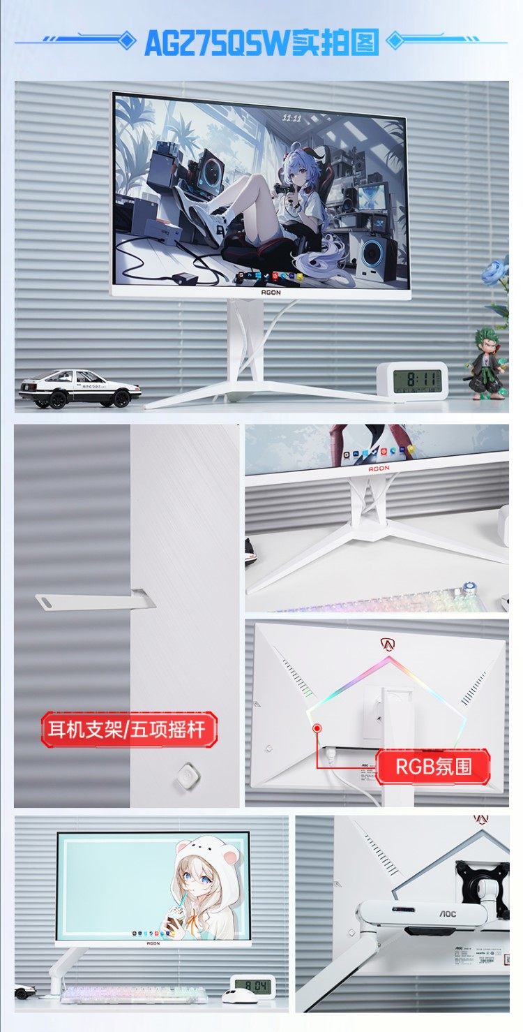 | Color Classification | Ag275Qsw [Fast Ips/2K/320Hz Overclocking/0.3Ms(Mprt)/Hardware Low Blue Light],Ag275Qsr [Fast Ips/2K/Native 320Hz/0.3Ms(Mprt)/Hardware Low Blue Light],Bracket Set [Ag275Qsw+Am500W White Bracket],Bracket Set [Ag275Qsr+Am500W White Bracket] |
