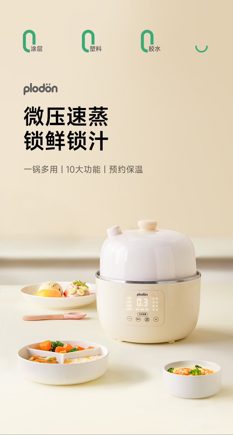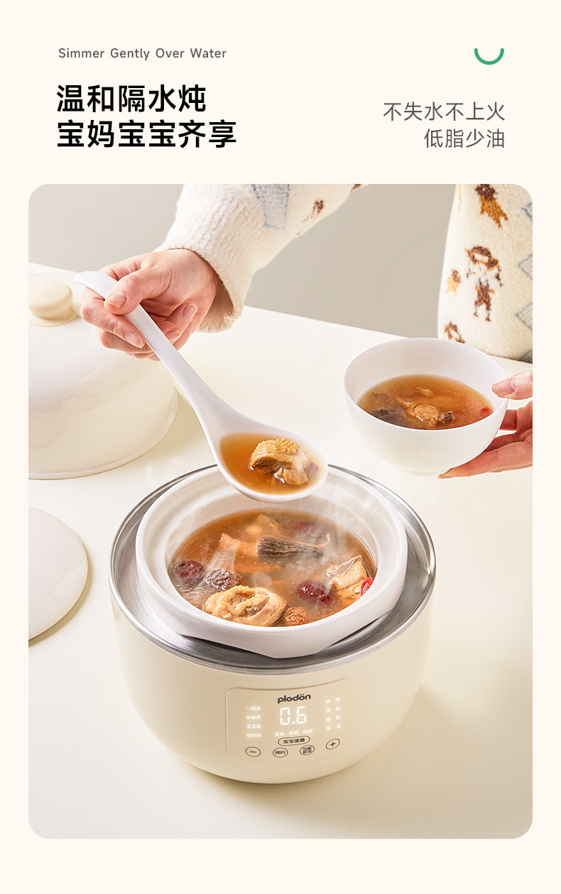 Plodon Baby Food Pot, Electric Stew Pot for Infants, Bb Soup Pot, Water-Separating Stew Pot, Micro-Pressure Ceramic Electric Steamer