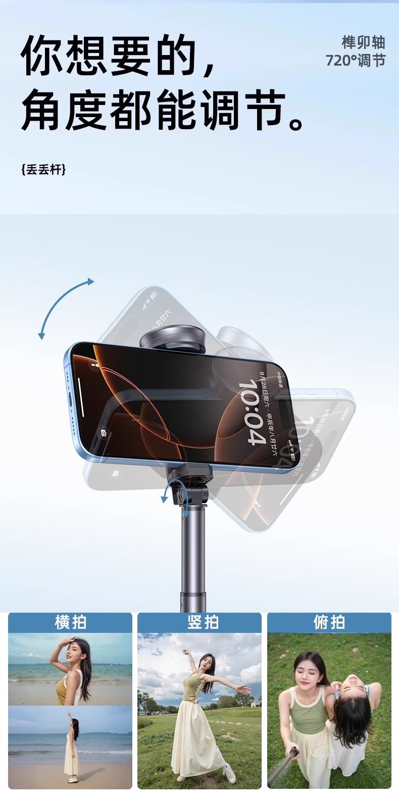 Haoyishi Doudou Stick Mobile Phone Selfie Stick 2026 New Model Universal Floor Tripod Travel Portable for Taking Photos, Vlogs, and Video Shooting, Special 360-Degree Rotating Integrated Stand