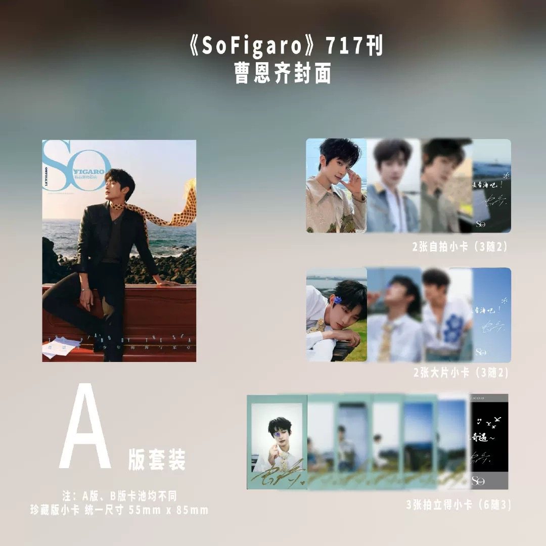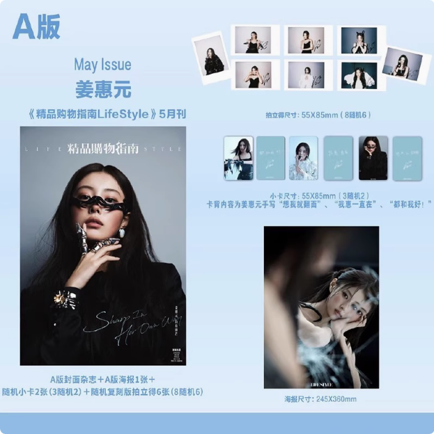 | Volume Name | Package a,Package B,C Package,Lin Qiannan Version A: Version a Cover Magazine + 1 Poster + 4 Small Cards (7 with 4) + 1 Printed Polaroid,Lin Qiannan Version B: Version B Cover Magazine + 1 Poster + 4 Small Cards (7 with 4) + 1 Printed Polaroid,Lin Qiannan C Version: A+B Version Cover + 2 Posters + 7 Small Cards + 1 Polaroid Photo of Each of Ab Version + 3 Hidden Small Cards + 1 Hidden Polaroid Photo,Cao Enqi Official C Version: a Version + B Version + One "Life's Four Grids" Card + Three Printed Polaroid Photos,Cao Enqi Official a Edition: a Cover + 2 Selfie Cards + 2 Large Format Cards + 3 Polaroid Cards,Cao Enqi Official B Version: B Cover + 2 Selfie Photocards + 2 Large Format Photocards + 3 Polaroid Photocards,Jiang Huiyuan Official C Version: A+B Cover + 2 Posters + 3 Small Cards + 8 Polaroid Photos + 2 Hidden Cards + 2 Polaroid Photos,Jiang Huiyuan B Version Cover + 1 Poster + 2 Random Photo Cards + 6 Random Polaroids,Jiang Huiyuan a Version Cover + 1 Poster + 2 Random Photo Cards + 6 Random Polaroids |