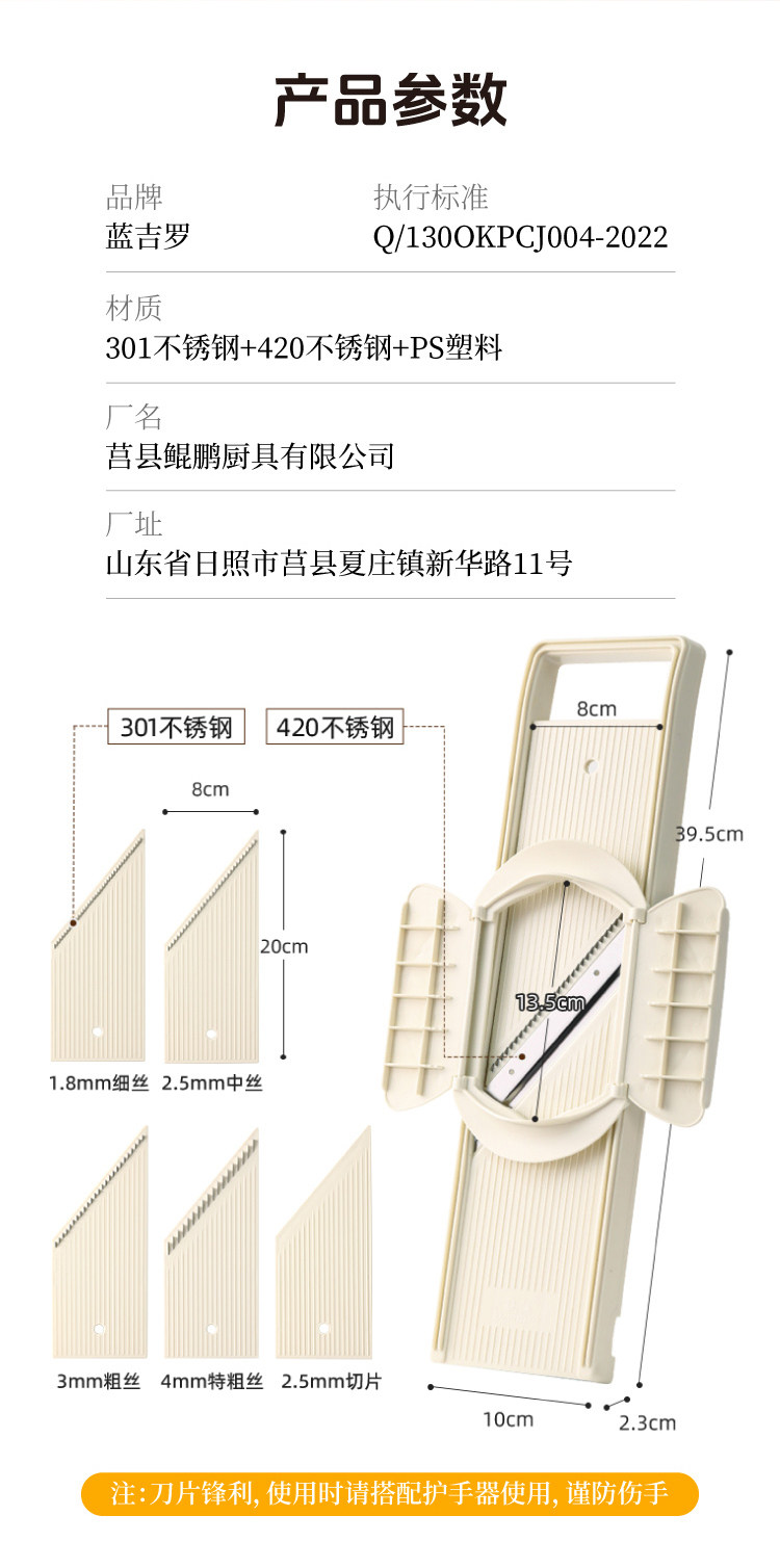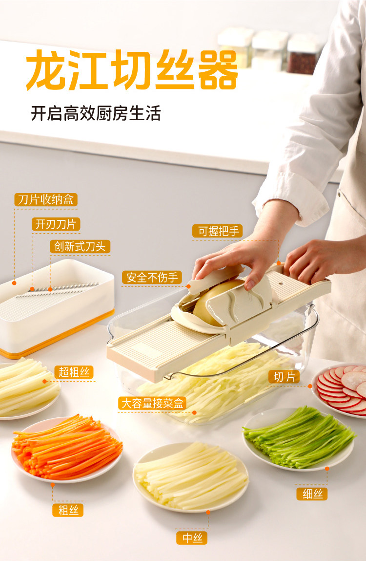 Longjiang Grater for Home Use, Safe for Hands, Potato Shredder, Radish Shredder, Multi-Functional Slicer and Cutting Board