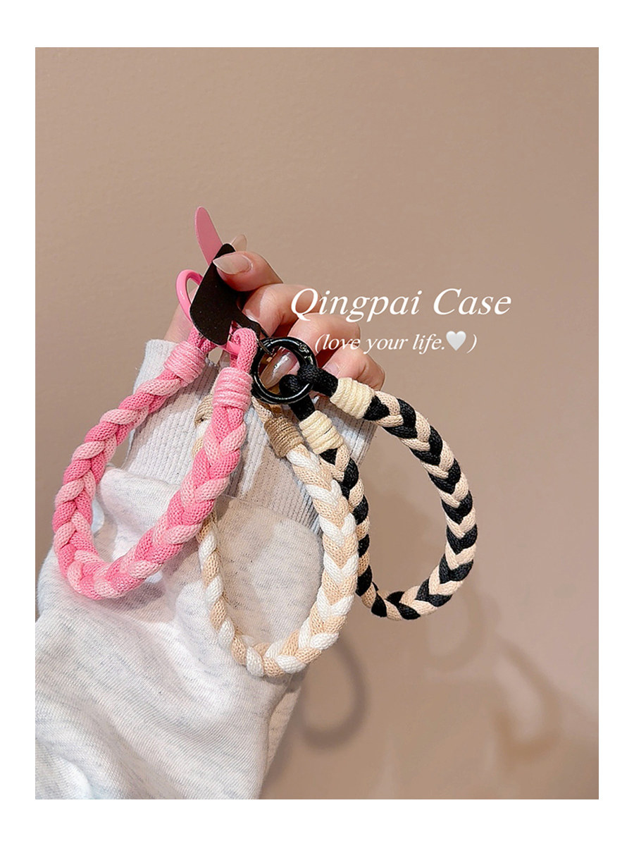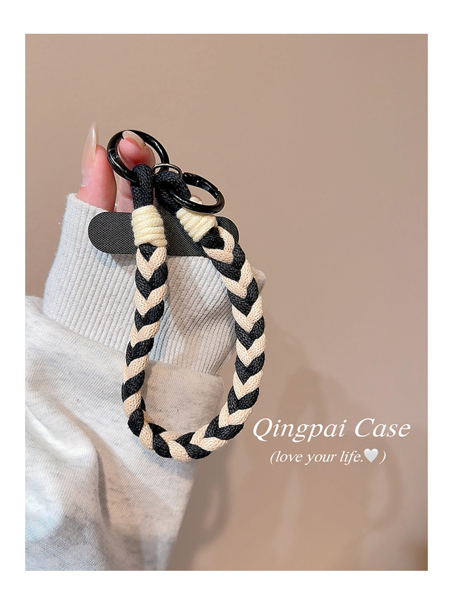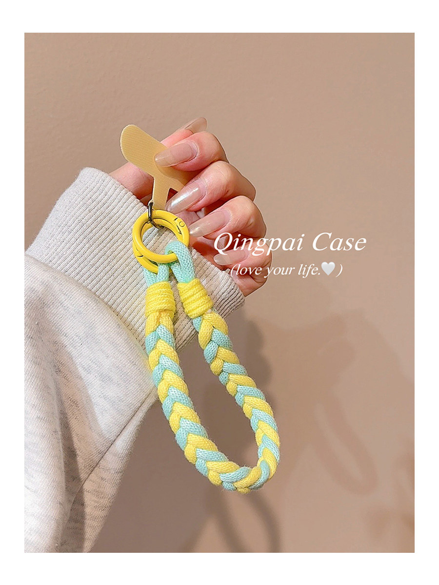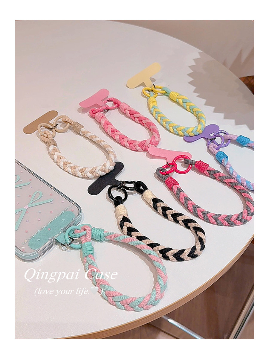 Lightweight Phone Case Wrist Strap Short Style Color-Blocking Solid Color Nylon Braided Thick Anti-Lost Keychain Cord