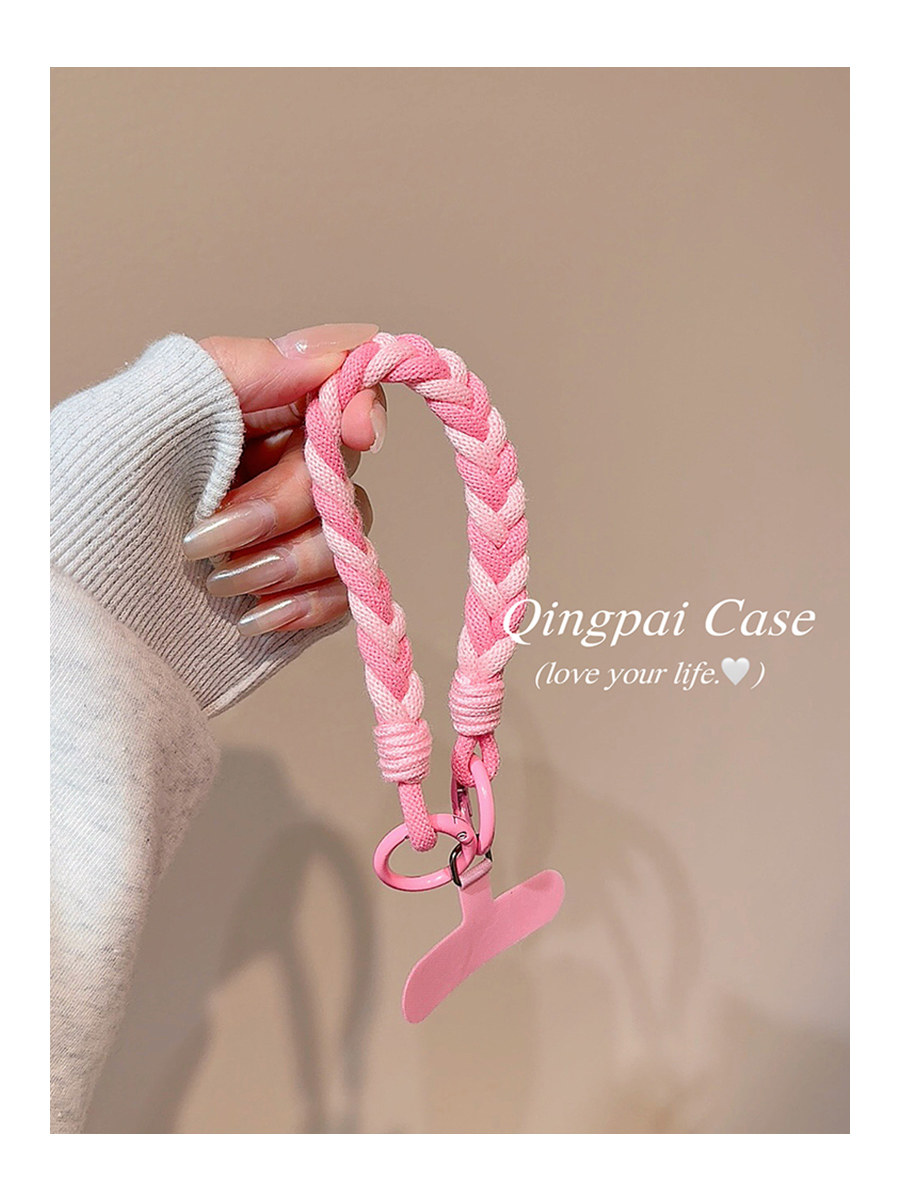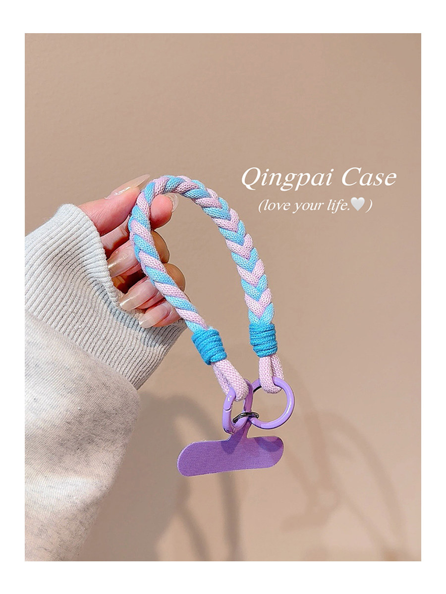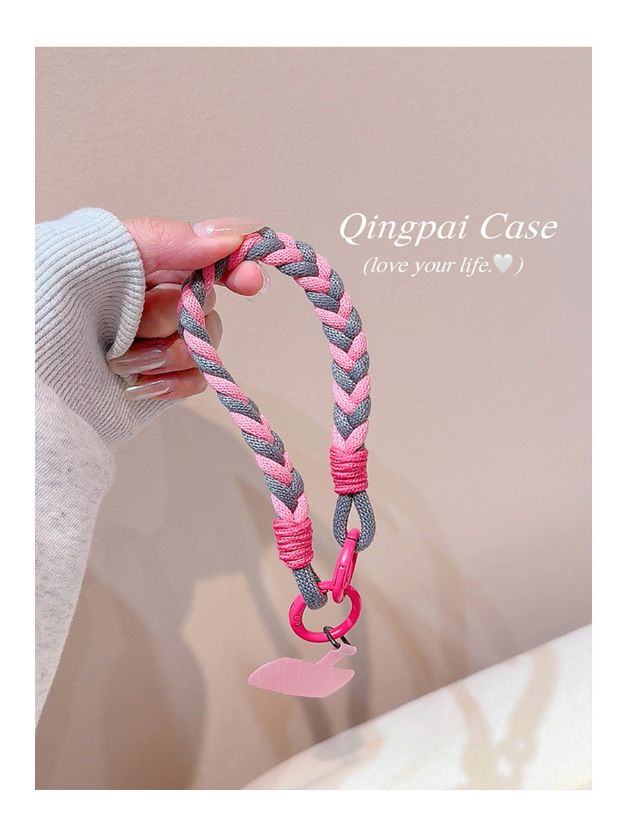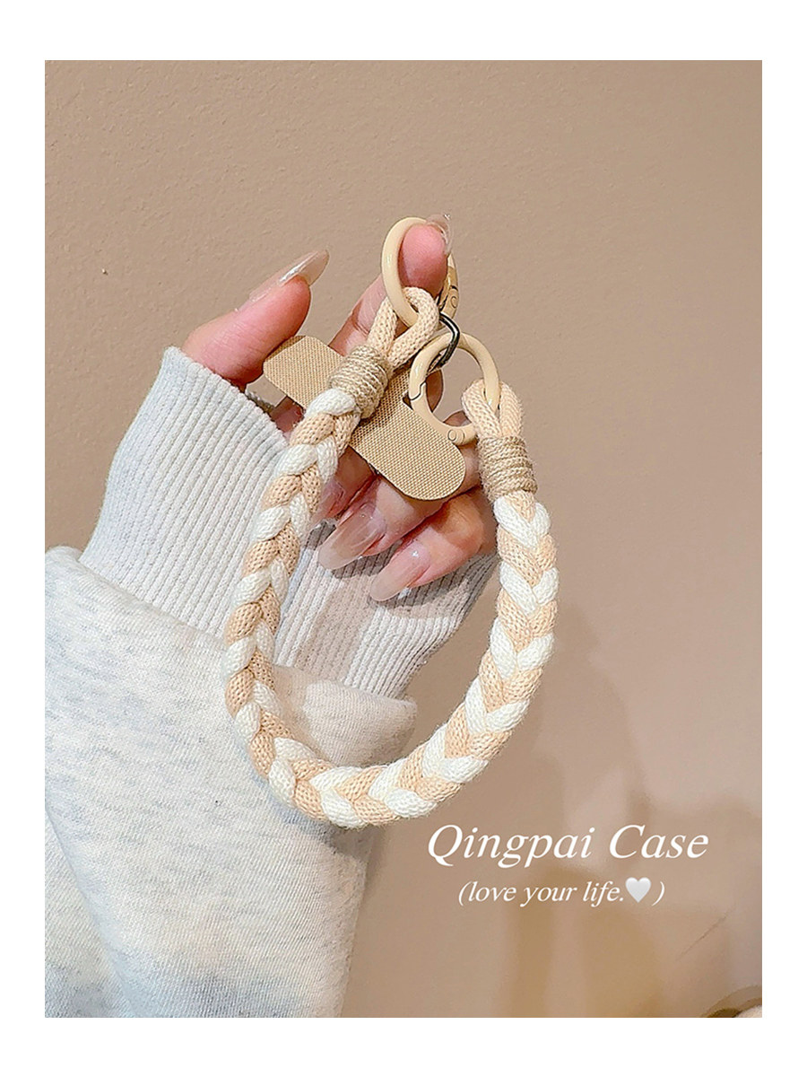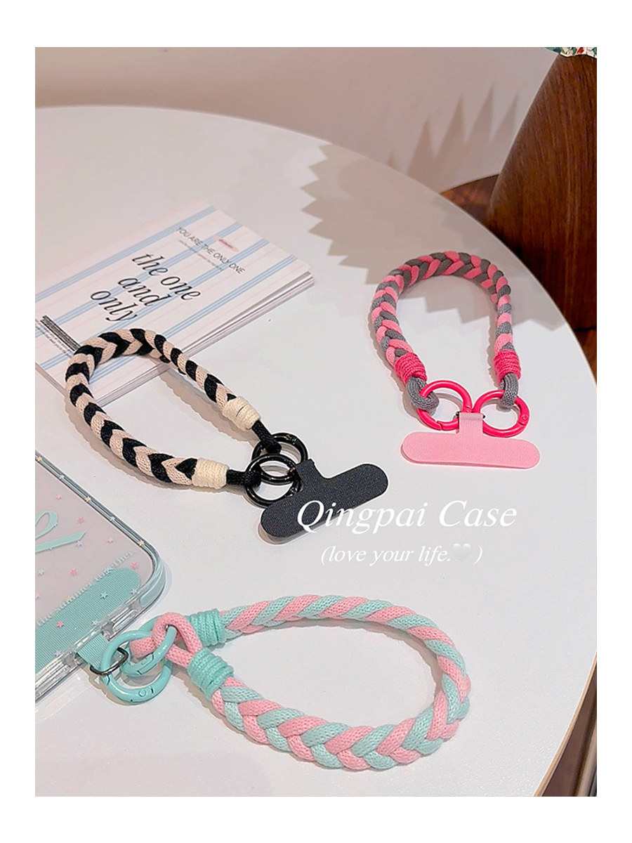 Lightweight Phone Case Wrist Strap Short Style Color-Blocking Solid Color Nylon Braided Thick Anti-Lost Keychain Cord